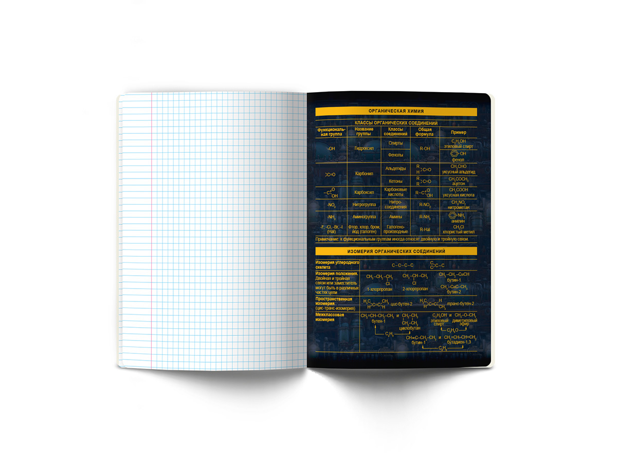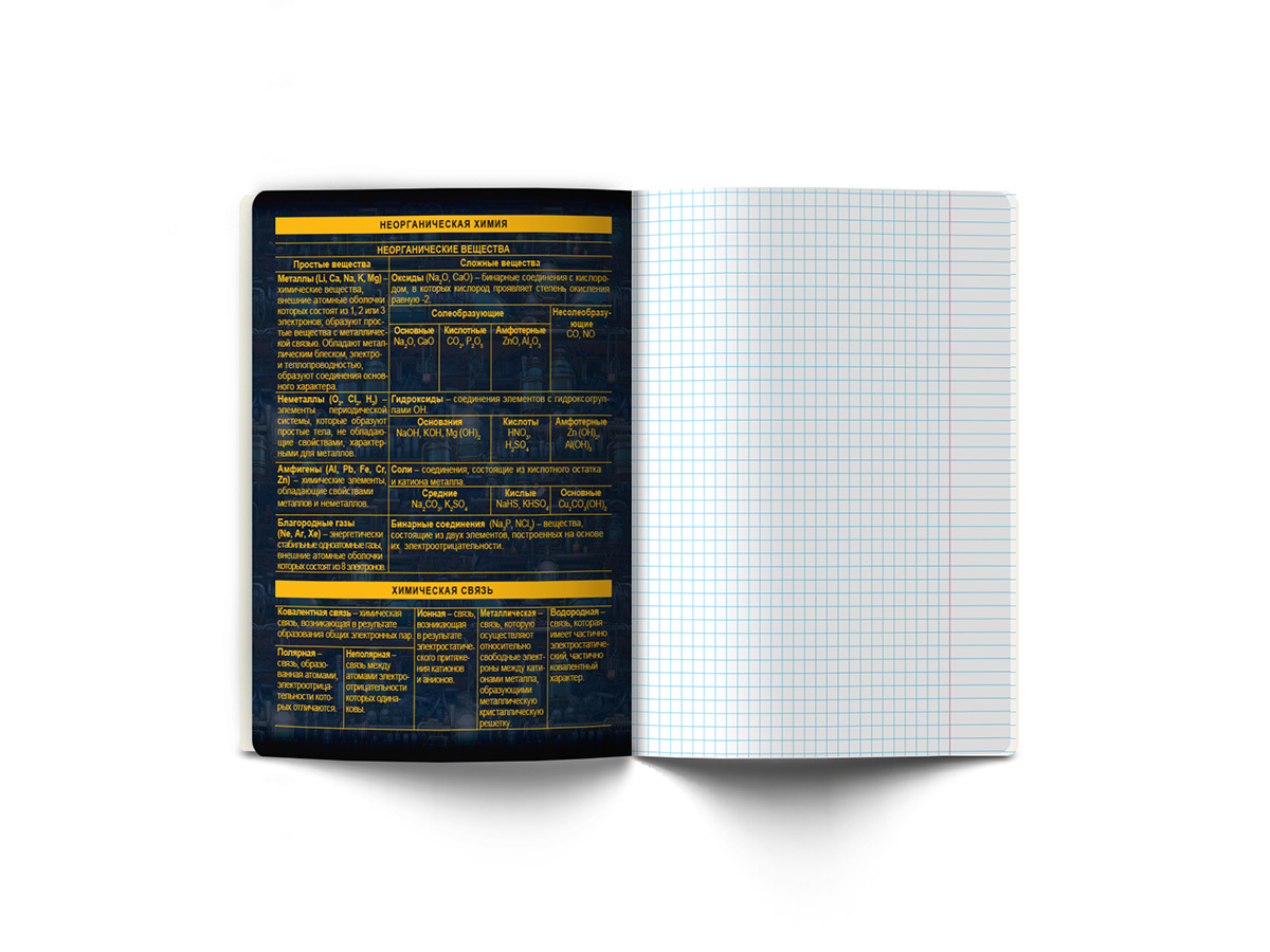 Предметная тетрадь А5+ формата, 48 листов предназначена для учащихся средних и старших классов. Внутренний блок изготовлен из качественной писчей бумаги плотностью 65 г/кв. м, 100% белизны, обложка из мелованного картона плотностью 190 г/кв. м. Дизайн изделия дополнен спецэффектом в виде глянцевой ламинации. Линовка - клетка. Вид скрепления - скоба. Тетради имеют закругленные уголки, красные поля, титульный лист и запечатанный форзац. Справочная информация по предмету на форзацах, обороте титульного листа и последнем листе.