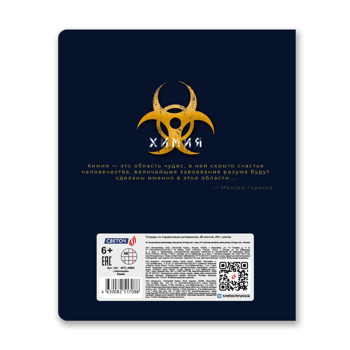 Тетрадь со справочным материалом Эволюция, глянцевая ламинация, A5+ 48 л. на скобе 65 г/м², белизна 100%, 10 шт, клетка, 00884 Химия, Светоч 48Т5