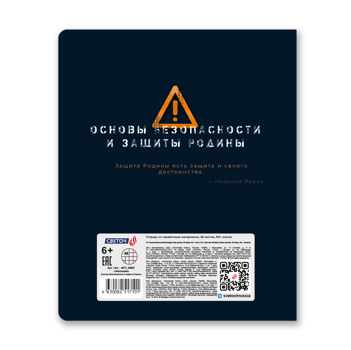 Тетрадь со справочным материалом Эволюция, глянцевая ламинация, A5+ 48 л. на скобе 65 г/м², белизна 100%, 10 шт, клетка, 00887 Основы безопасности и защиты Родины, Светоч 48Т5