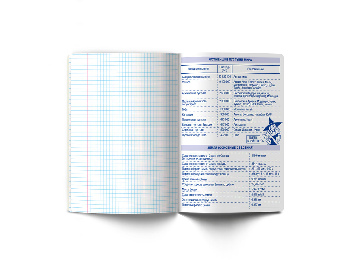 Предметная тетрадь А5+ формата, 48 листов предназначена для учащихся средних и старших классов. Внутренний блок изготовлен из качественной писчей бумаги плотностью 65 г/кв. м, 100% белизны, обложка из мелованного картона плотностью 190 г/кв. м. Линовка - клетка. Вид скрепления - скоба. Тетради имеют закругленные уголки, красные поля. Справочный материал с персонажами на форзацах.
