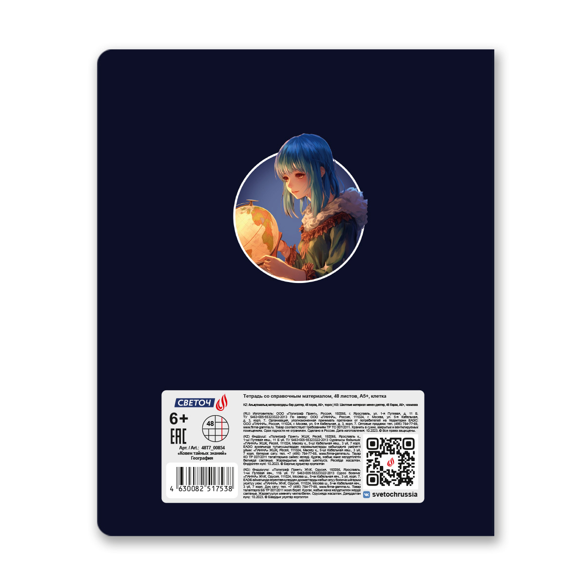 Тетрадь со справочным материалом Ковен тайных знаний, A5+ 48 л. на скобе 65 г/м², белизна 100%, 10 шт, клетка, 00854 География, Светоч 48Т7