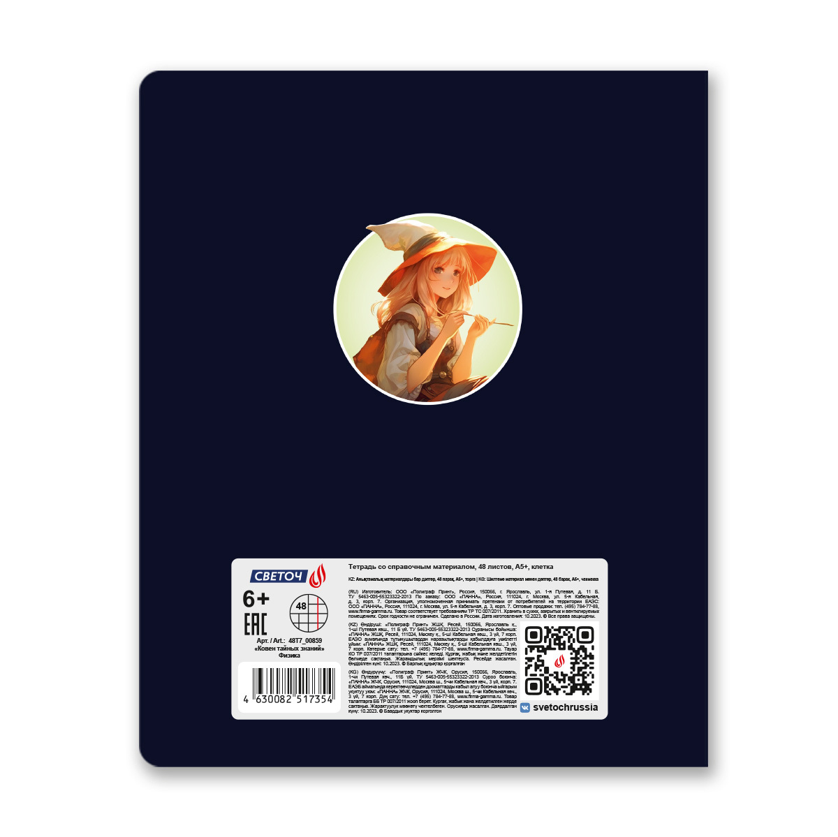 Тетрадь со справочным материалом Ковен тайных знаний, A5+ 48 л. на скобе 65 г/м², белизна 100%, 10 шт, клетка, 00859 Физика, Светоч 48Т7