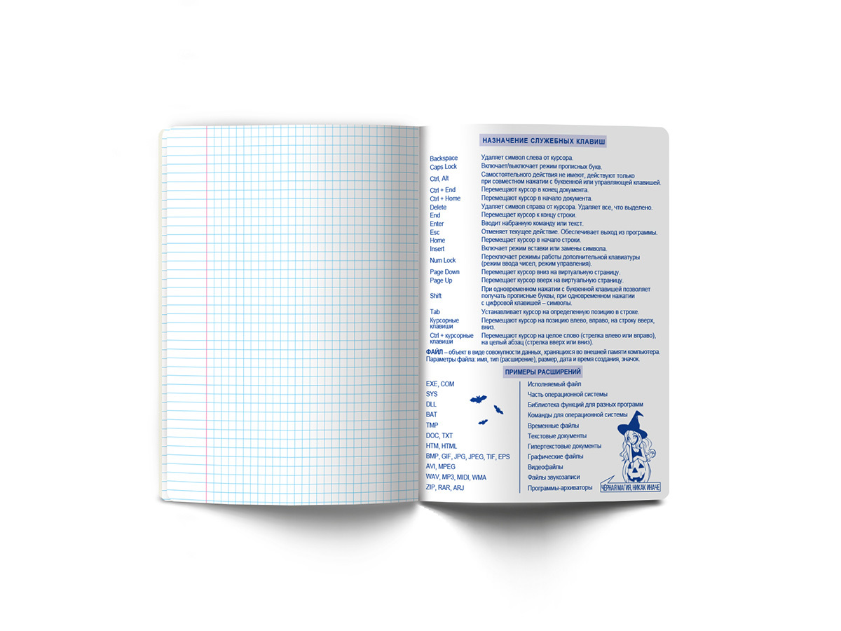 Предметная тетрадь А5+ формата, 48 листов предназначена для учащихся средних и старших классов. Внутренний блок изготовлен из качественной писчей бумаги плотностью 65 г/кв. м, 100% белизны, обложка из мелованного картона плотностью 190 г/кв. м. Линовка - клетка. Вид скрепления - скоба. Тетради имеют закругленные уголки, красные поля. Справочный материал с персонажами на форзацах.
