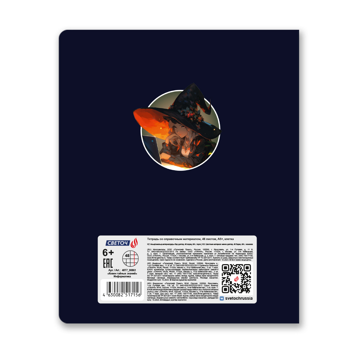 Тетрадь со справочным материалом Ковен тайных знаний, A5+ 48 л. на скобе 65 г/м², белизна 100%, 10 шт, клетка, 00861 Информатика, Светоч 48Т7