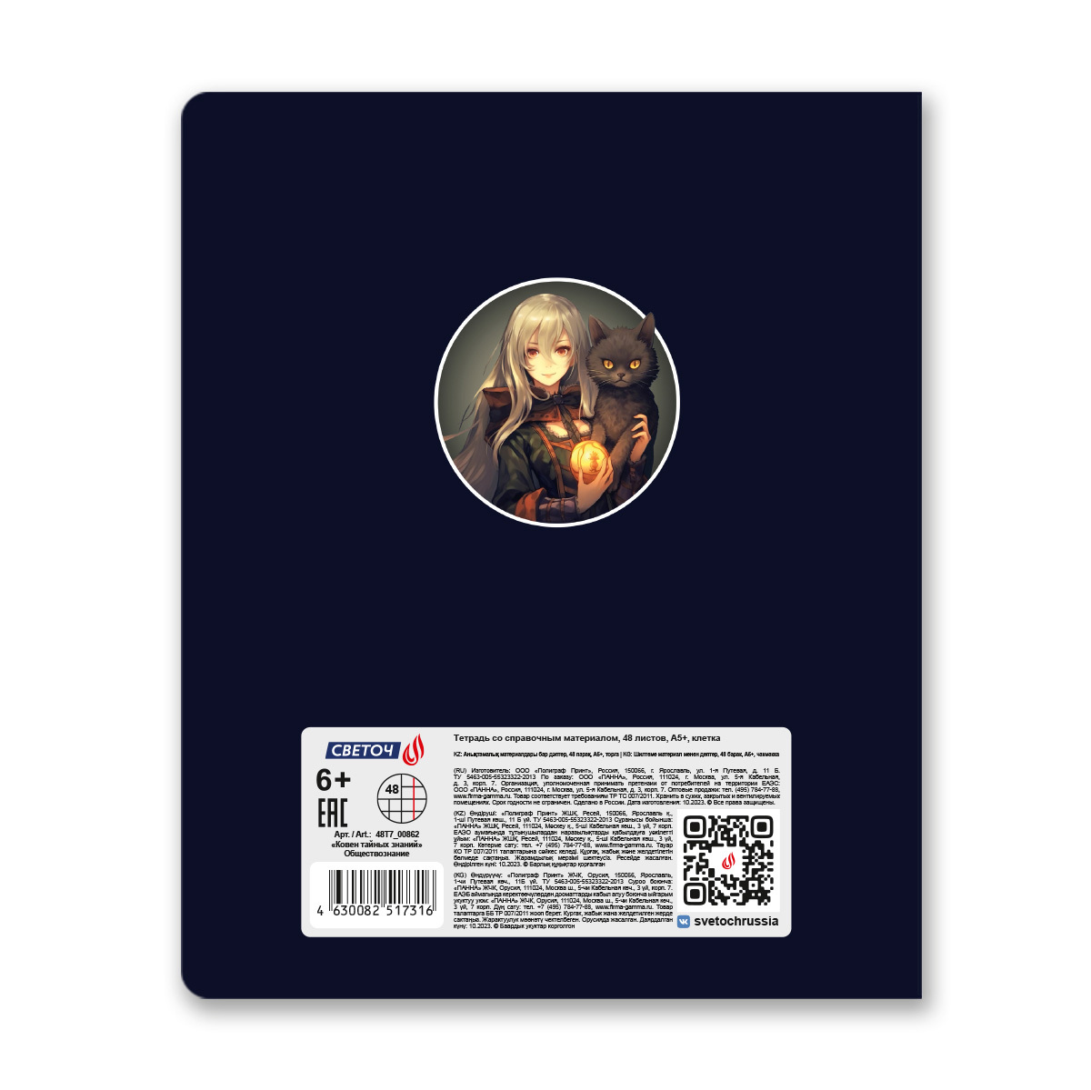 Тетрадь со справочным материалом Ковен тайных знаний, A5+ 48 л. на скобе 65 г/м², белизна 100%, 10 шт, клетка, 00862 Обществознание, Светоч 48Т7