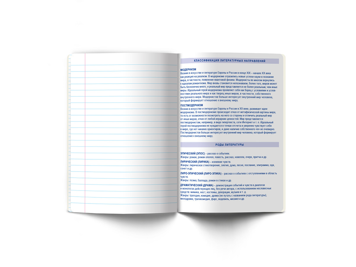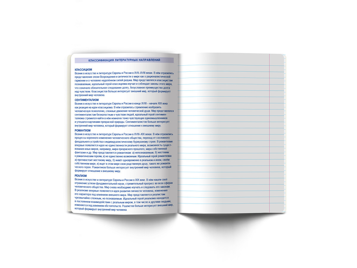 Тетрадь со справочным материалом Яркие краски, матовая ламинация + выбор. лак, A5+ 48 л. на скобе 65 г/м², белизна 100%, 10 шт, линия, 00869 Литература, Светоч 48Т8