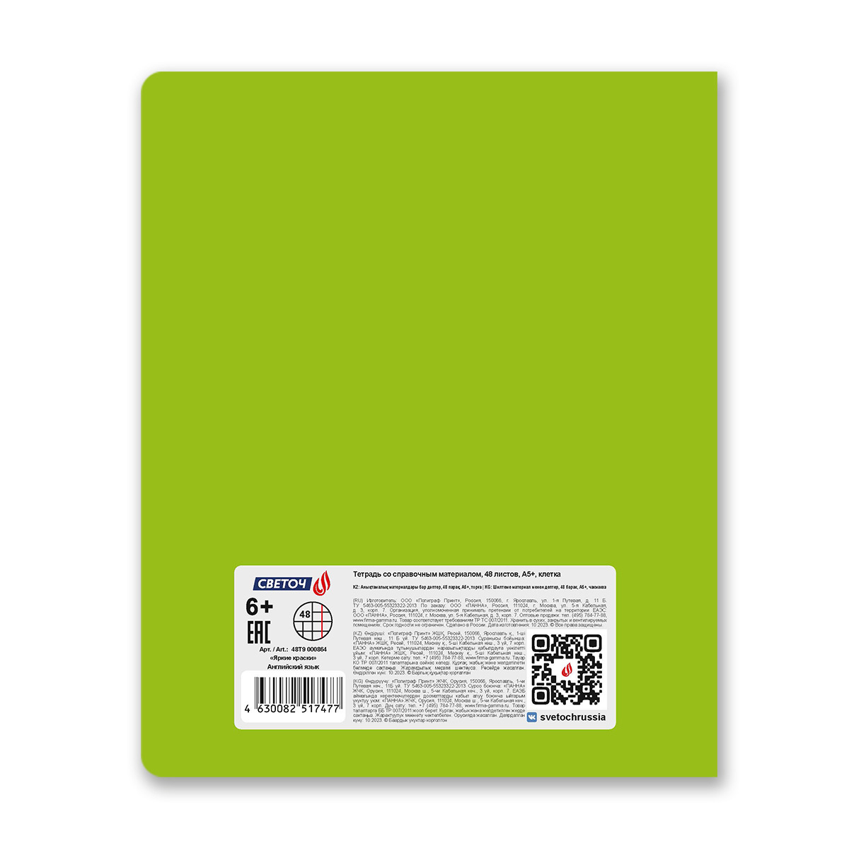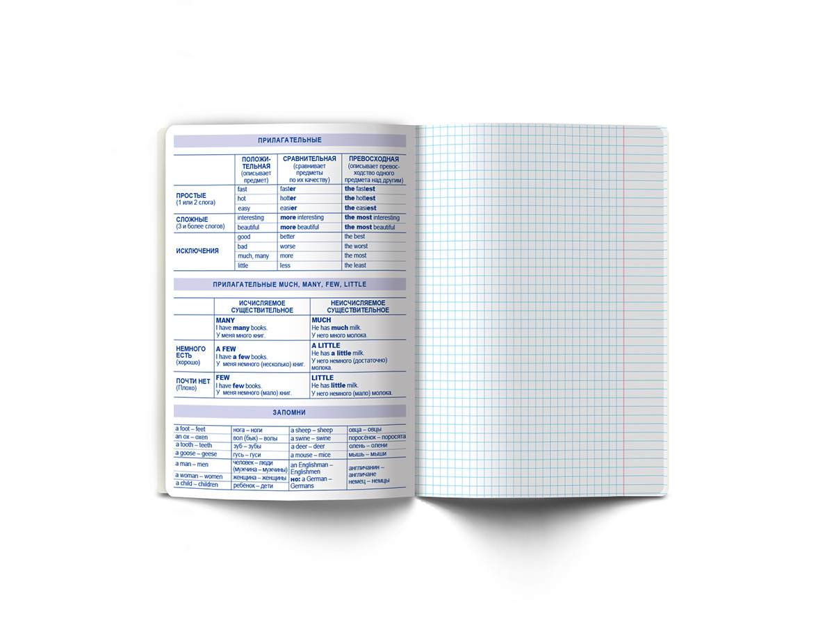 Тетрадь со справочным материалом Яркие краски, матовая ламинация +выбор. лак, A5+ 48 л. на скобе 65 г/м², белизна 100%, 10 шт, клетка, 00864 Английский язык, Светоч 48Т9