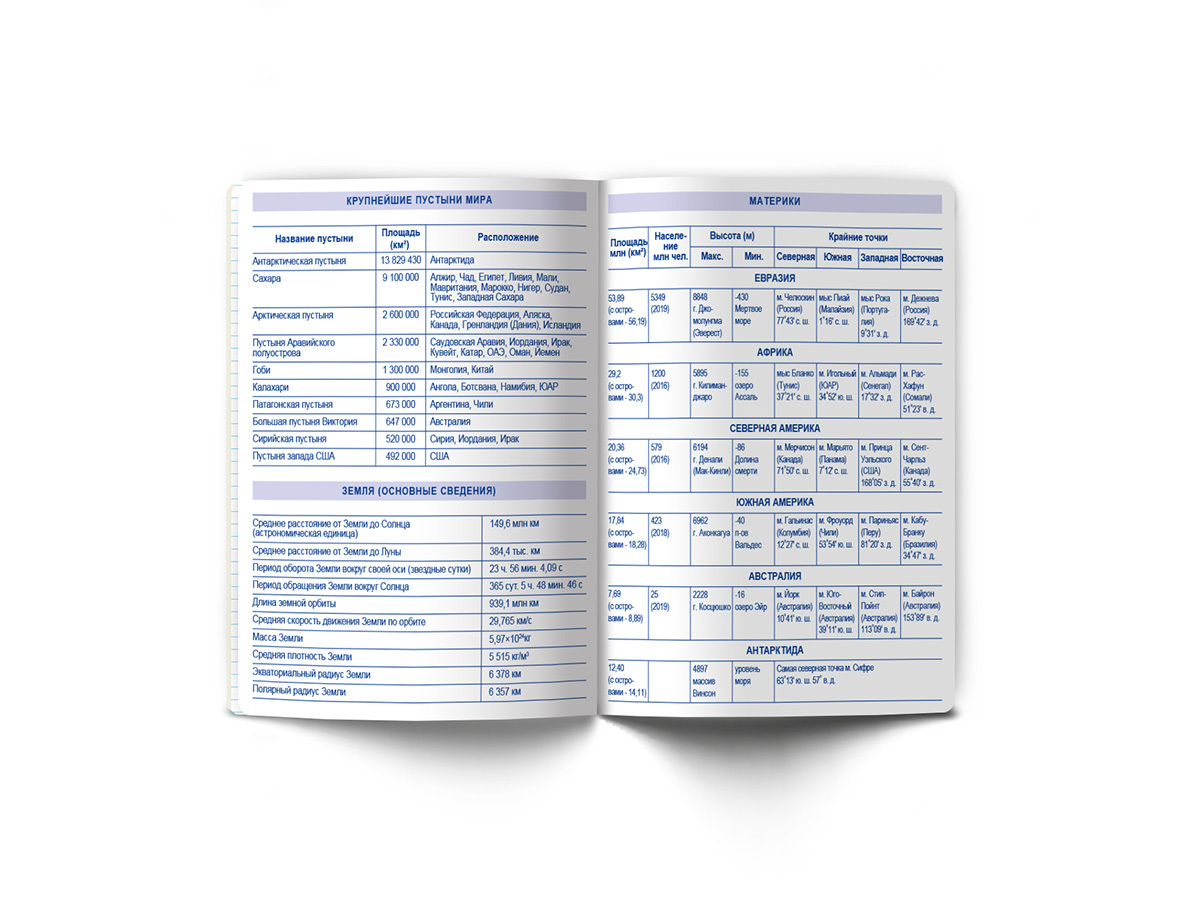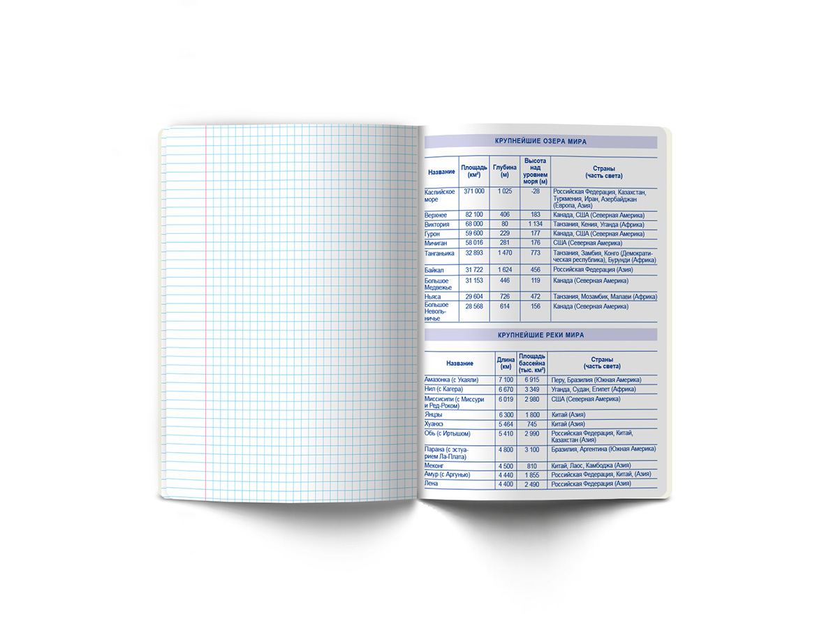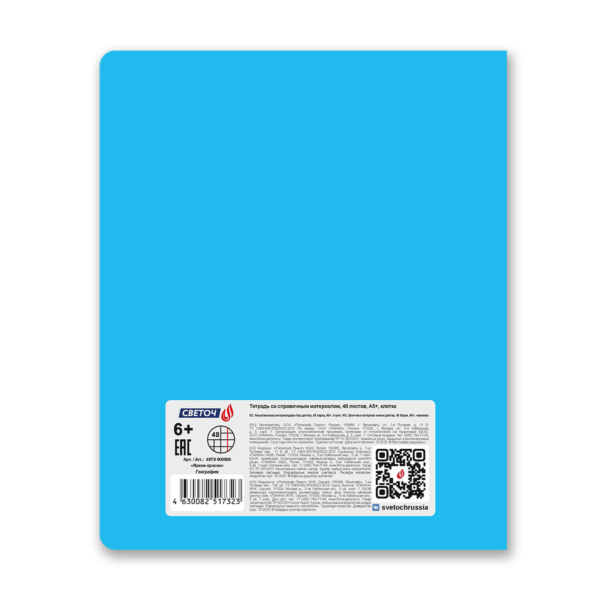 Тетрадь со справочным материалом Яркие краски, матовая ламинация +выбор. лак, A5+ 48 л. на скобе 65 г/м², белизна 100%, 10 шт, клетка, 00866 География, Светоч 48Т9