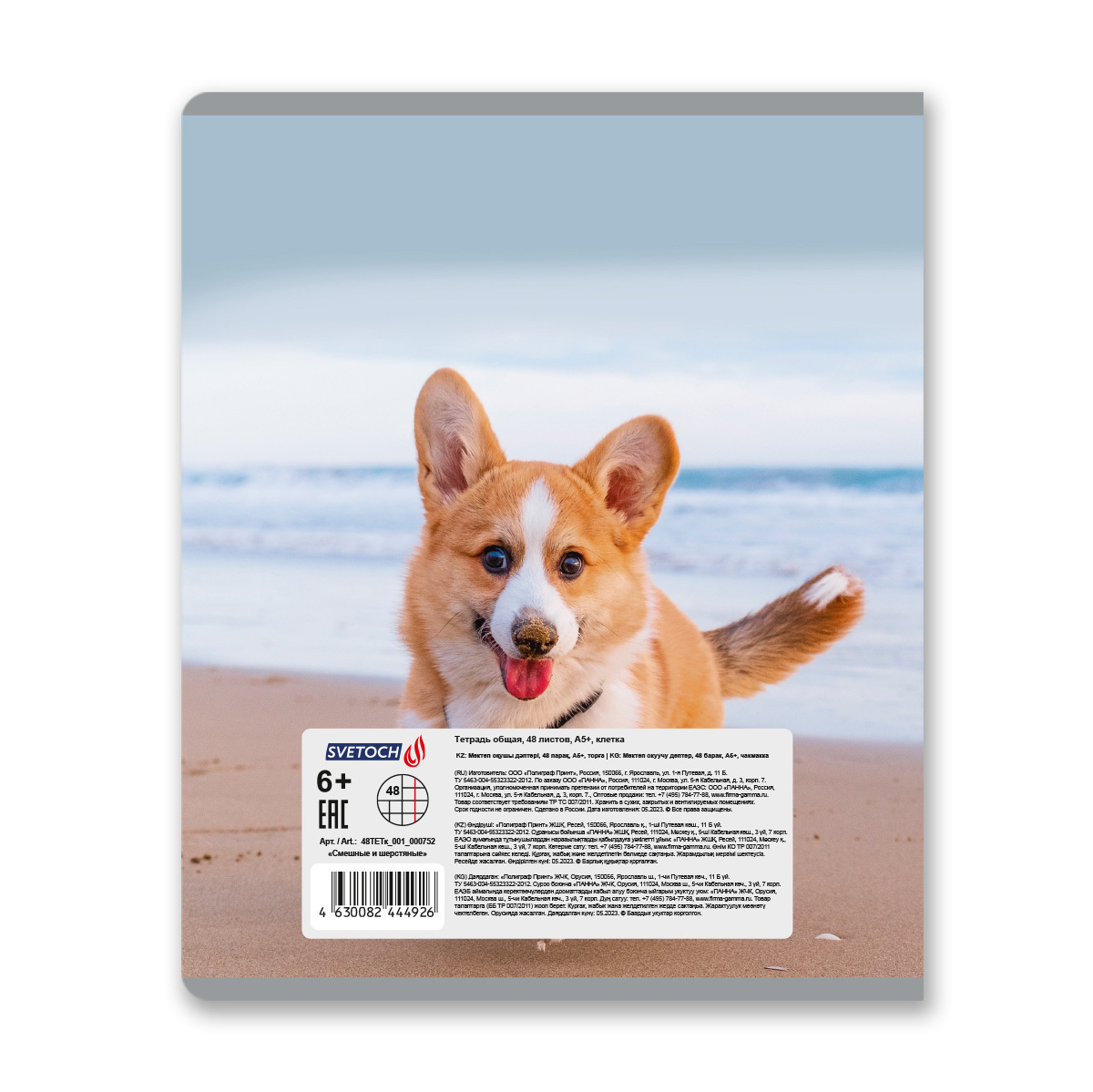 Тетрадь ученическая общая, A5+ 48 л. на скобе 65 г/м², белизна 100%, 10 шт, клетка в термоусадочной пленке, 000752 Смешные и шерстяные, Светоч 48ТЕТк-001