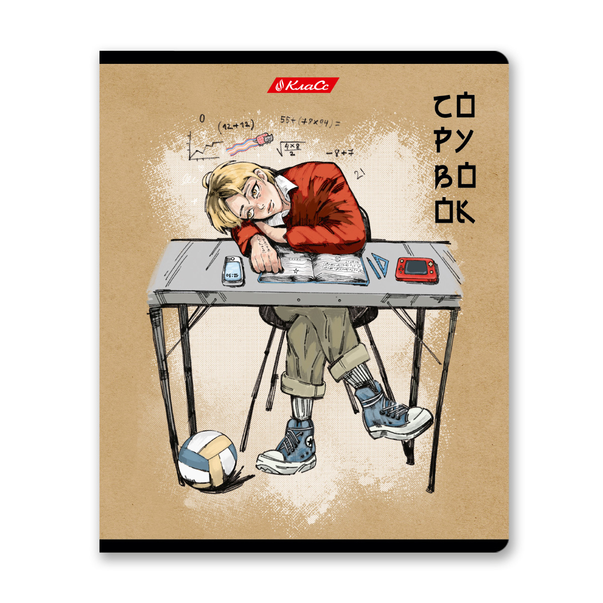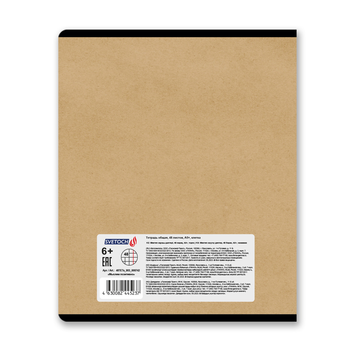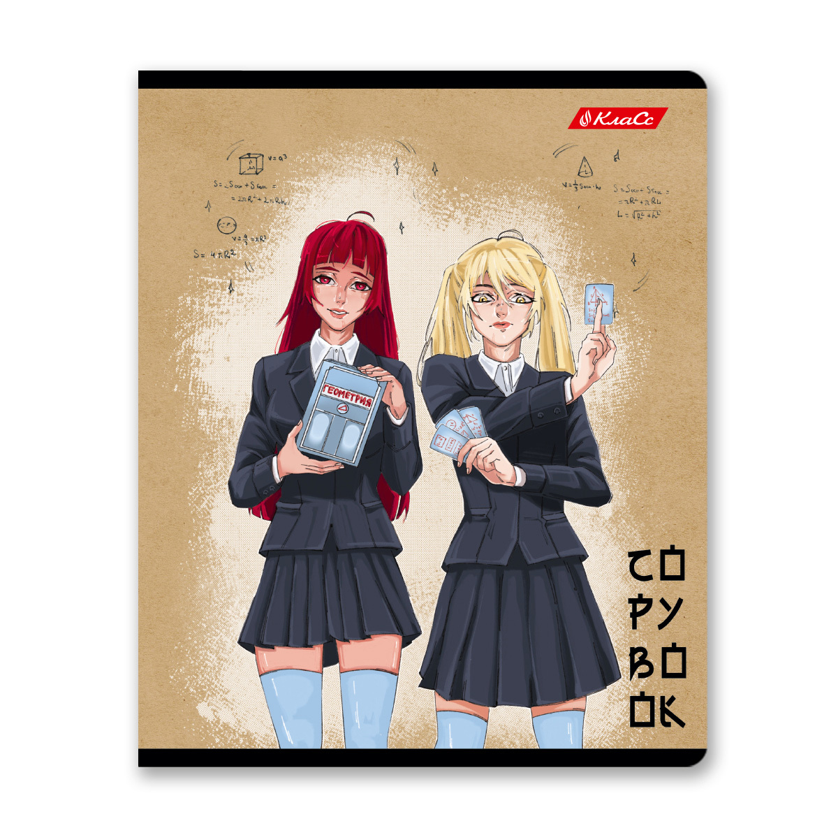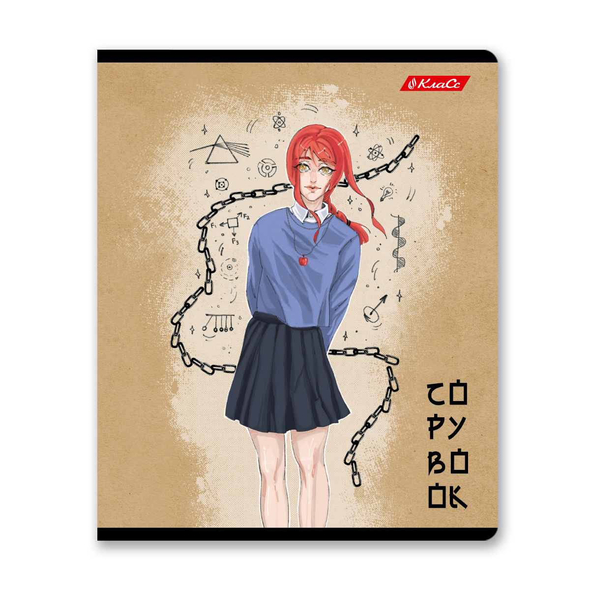 Внутренний блок изготовлен из качественной бумаги плотностью 65 г/кв. м, 100% белизны, обложка из мелованного картона плотностью 190 г/кв. м. Дизайн обложки дополнен эффектом в виде выборочного лака. Линовка - клетка, красные поля. Вид скрепления - скоба. Скругленные углы.