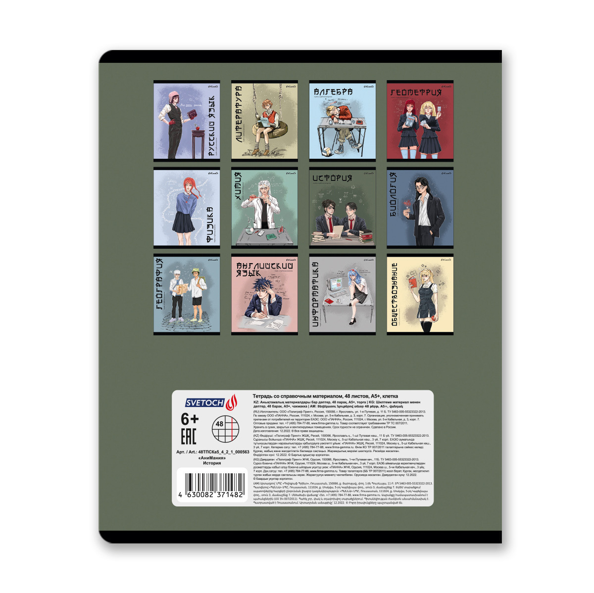 Тетрадь со справочным материалом АниМания, выборочный лак, A5+ 48 л. на скобе 65 г/м², белизна 100%, 10 шт, клетка, 000563 История, Светоч 48ТПСКа5_4_2_1