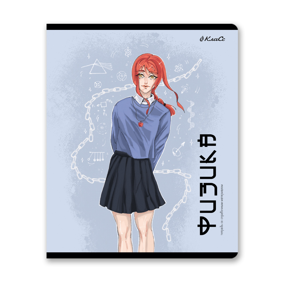 Предметная тетрадь А5+ формата, 48 листов предназначена для учащихся средних и старших классов. Внутренний блок изготовлен из качественной писчей бумаги плотностью 65 г/кв. м, 100% белизны, обложка из мелованного картона плотностью 190 г/кв. м. Линовка - клетка. Вид скрепления - скоба. Дизайн изделия дополнен спецэффектом в виде выборочного лака. Тетради имеют закругленные уголки, красные поля, титульный лист. Справочный материал на обороте титульного листа и последнем листе.