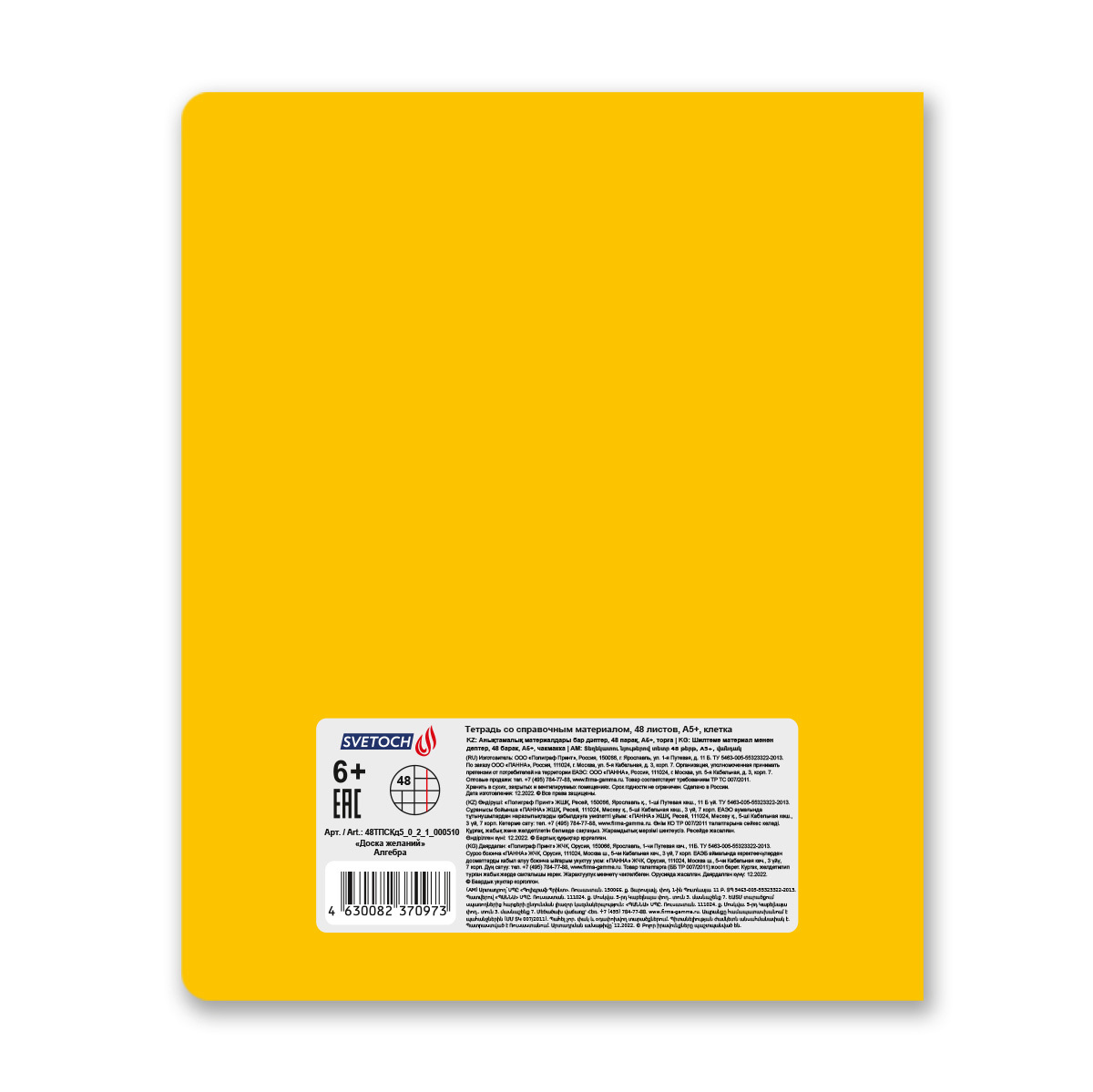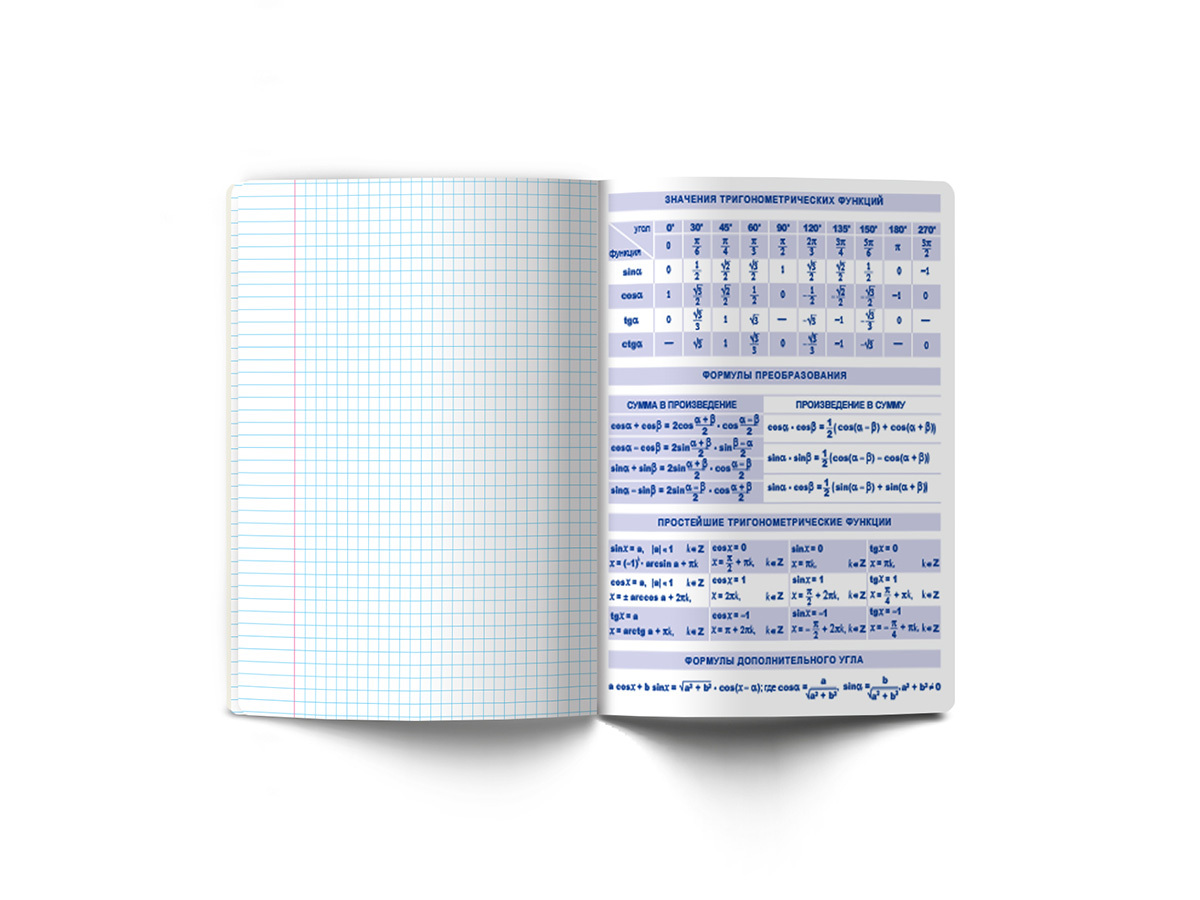 Тетрадь со справочным материалом Доска желаний, A5+ 48 л. на скобе 60 г/м², белизна 90%, 10 шт, клетка, 000510 Алгебра, Светоч 48ТПСКд5_0_2_1