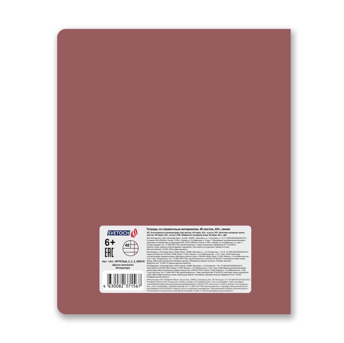 Тетрадь со справочным материалом Доска желаний, A5+ 48 л. на скобе 60 г/м², белизна 90%, 10 шт, линия, 000516 Литература, Светоч 48ТПСКд5_0_2_2