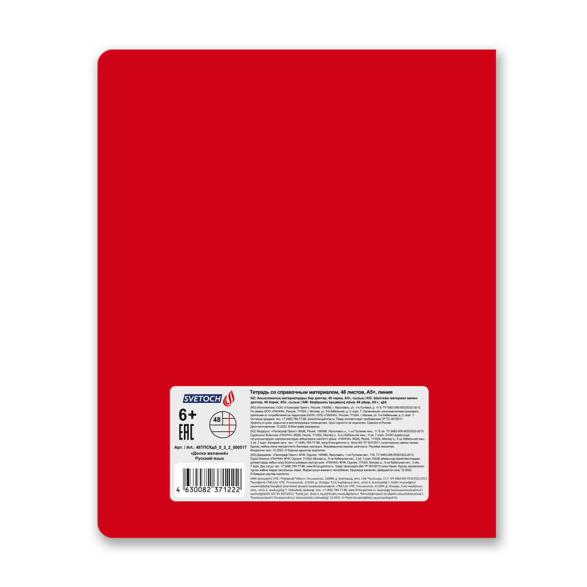 Тетрадь со справочным материалом Доска желаний, A5+ 48 л. на скобе 60 г/м², белизна 90%, 10 шт, линия, 000517 Русский язык, Светоч 48ТПСКд5_0_2_2