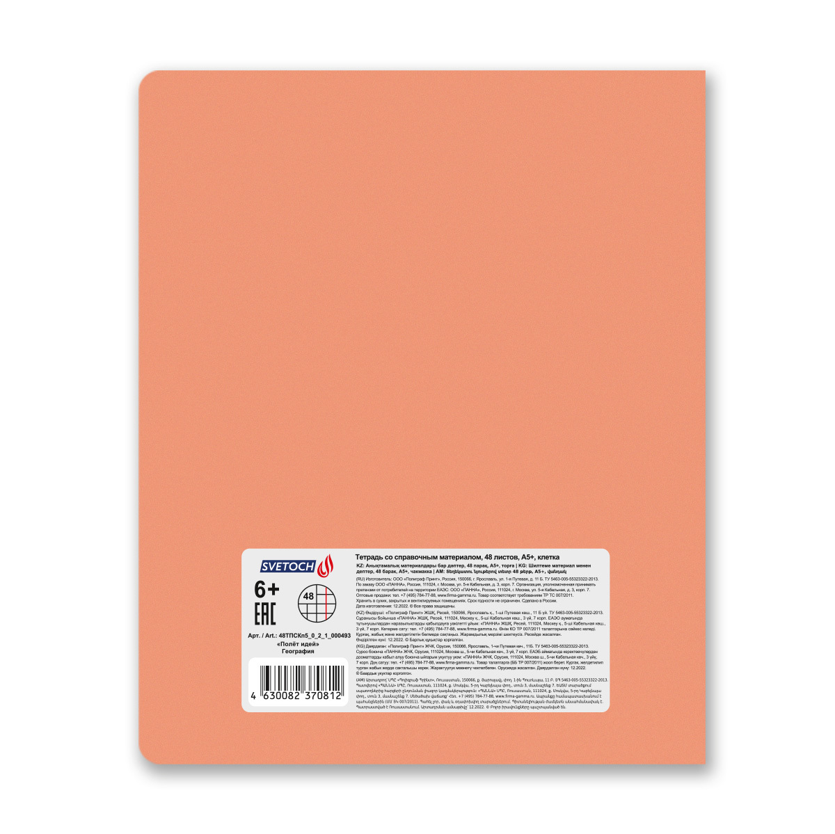 Тетрадь со справочным материалом Полёт идей, A5+ 48 л. на скобе 60 г/м², белизна 90%, 10 шт, клетка, 000493 География, Светоч 48ТПСКп5_0_2_1