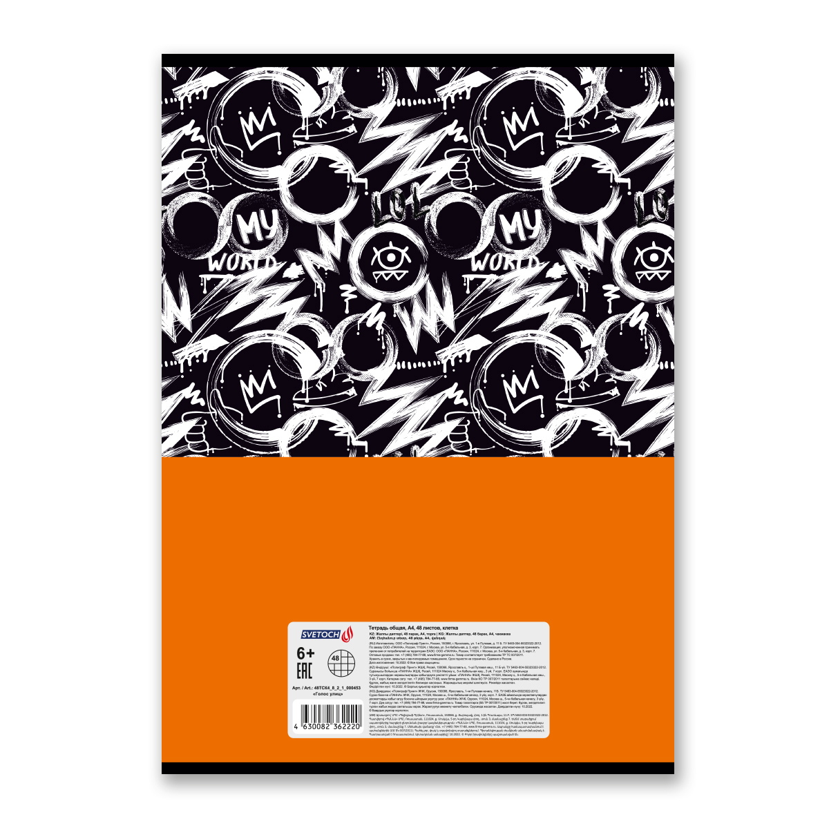 Тетрадь ученическая общая, твин лак, A4 48 л. на скобе 65 г/м², белизна 100%, 6 шт, клетка, 000453 Голос улиц, Светоч 48ТСК4_8_2_1