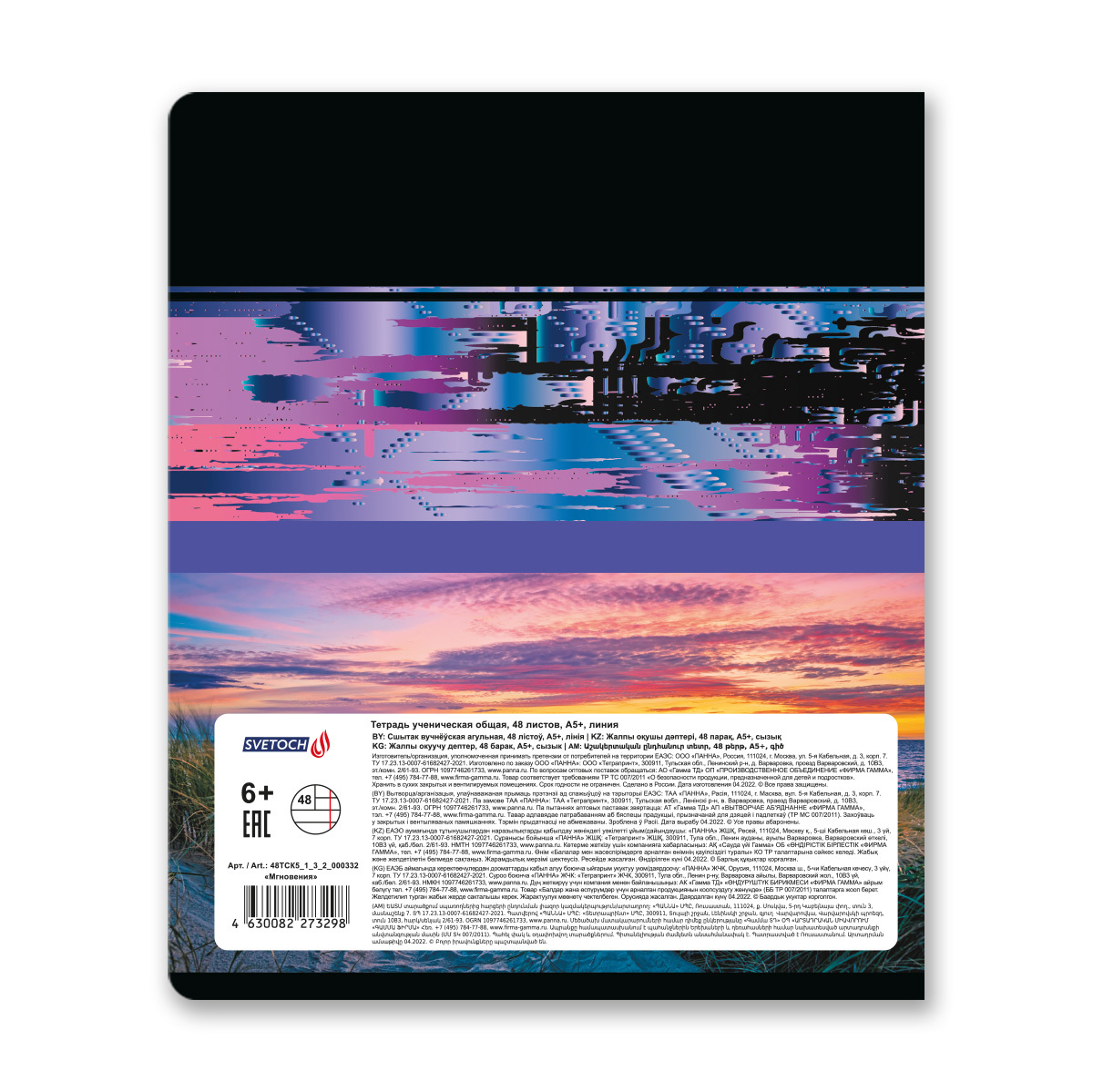 Тетрадь ученическая общая, A5+ 48 л. на скобе 65 г/м², белизна 100%, 10 шт, линия в термоусадочной пленке, 000332 Мгновения, Светоч 48ТСК5_1_3_2