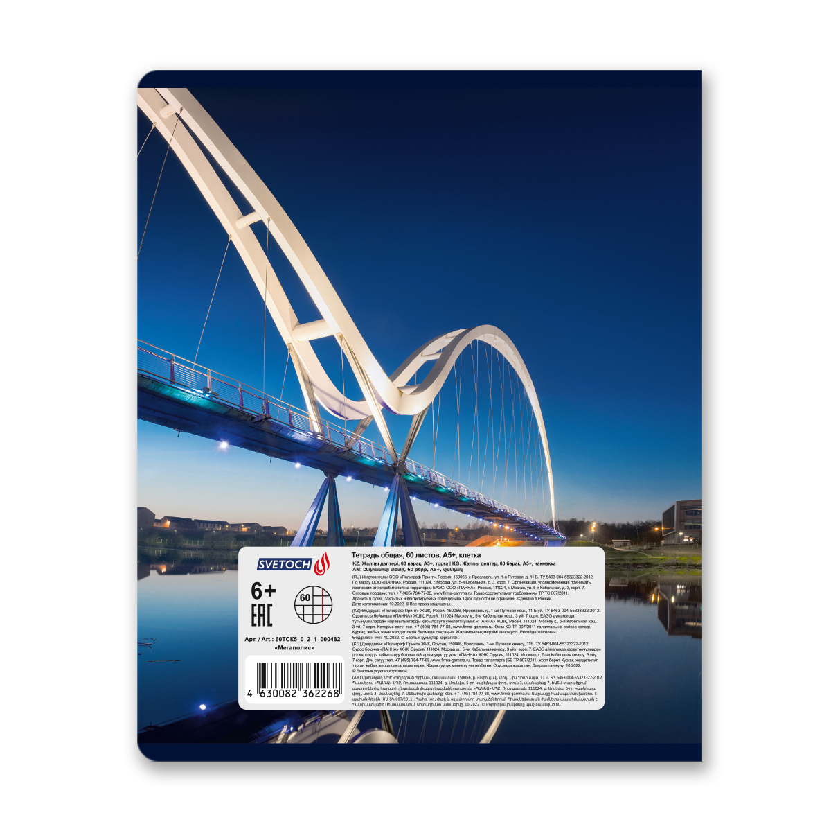 Тетрадь ученическая общая, A5+ 60 л. на скобе 65 г/м², белизна 100%, 10 шт, клетка в термоусадочной пленке, 000482 Мегаполис, Светоч 60ТСК5_0_2_1
