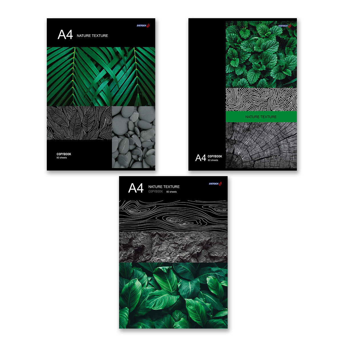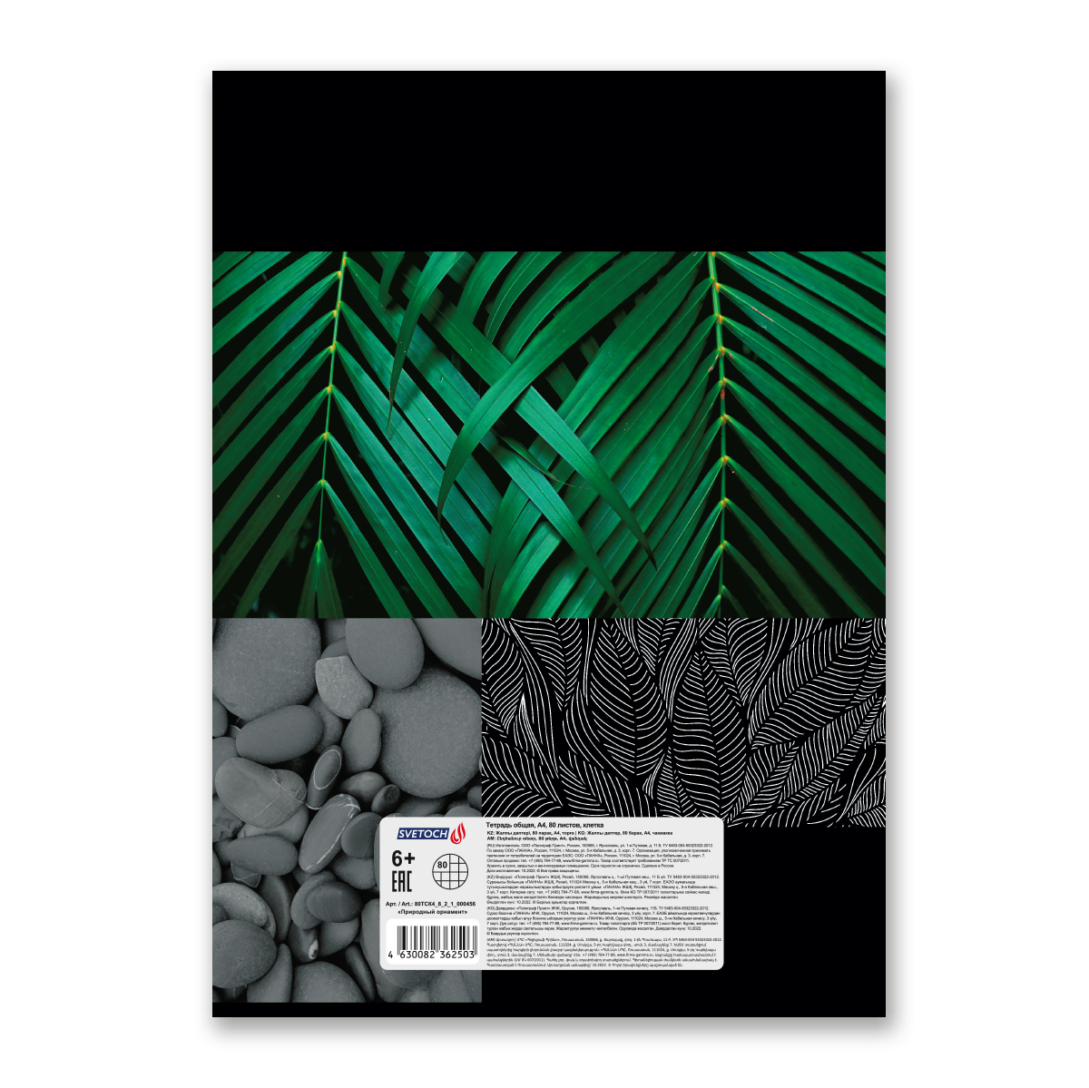 Тетрадь ученическая общая, твин лак, A4 80 л. на скобе 65 г/м², белизна 100%, 6 шт, клетка, 000456 Природный орнамент, Светоч 80ТСК4_8_2_1