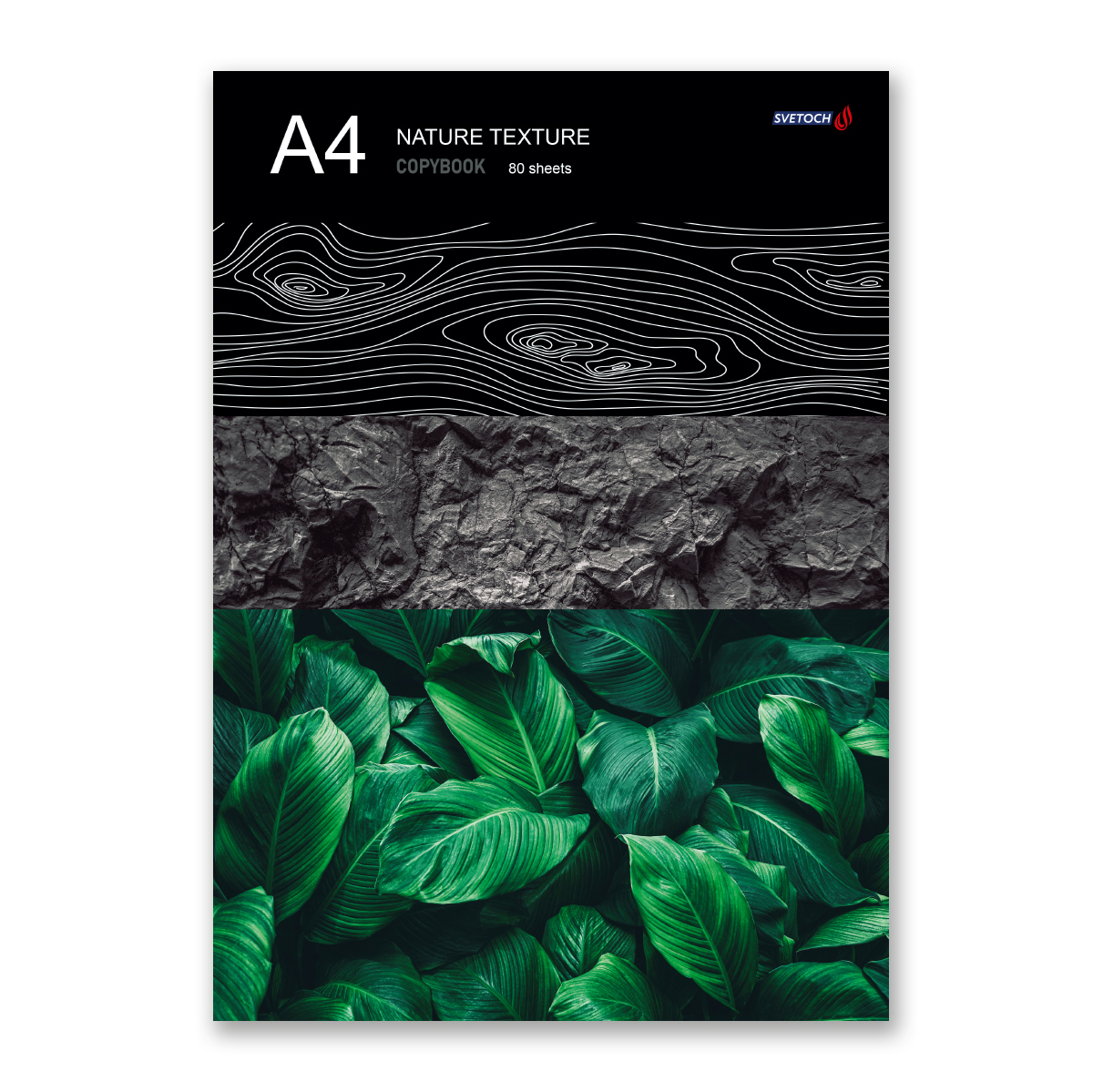 Тетрадь общая А4 формата, 80 листов можно использовать для скетчинга, для записей задач, желаний и рецептов, на работе и в школе. Внутренний блок изготовлен из качественной писчей бумаги плотностью 65 г/кв. м, 100% белизны, обложка из мелованного картона плотностью 190 г/кв. м. Линовка - клетка. Вид скрепления - скоба. Дизайн изделия дополнен спецэффектом в виде твин лака.