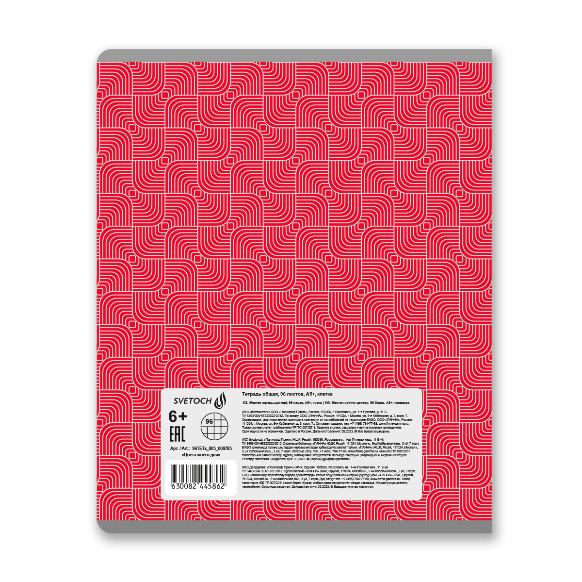 Пантон. Линовка - клетка, красные поля. Вид скрепления - скоба.