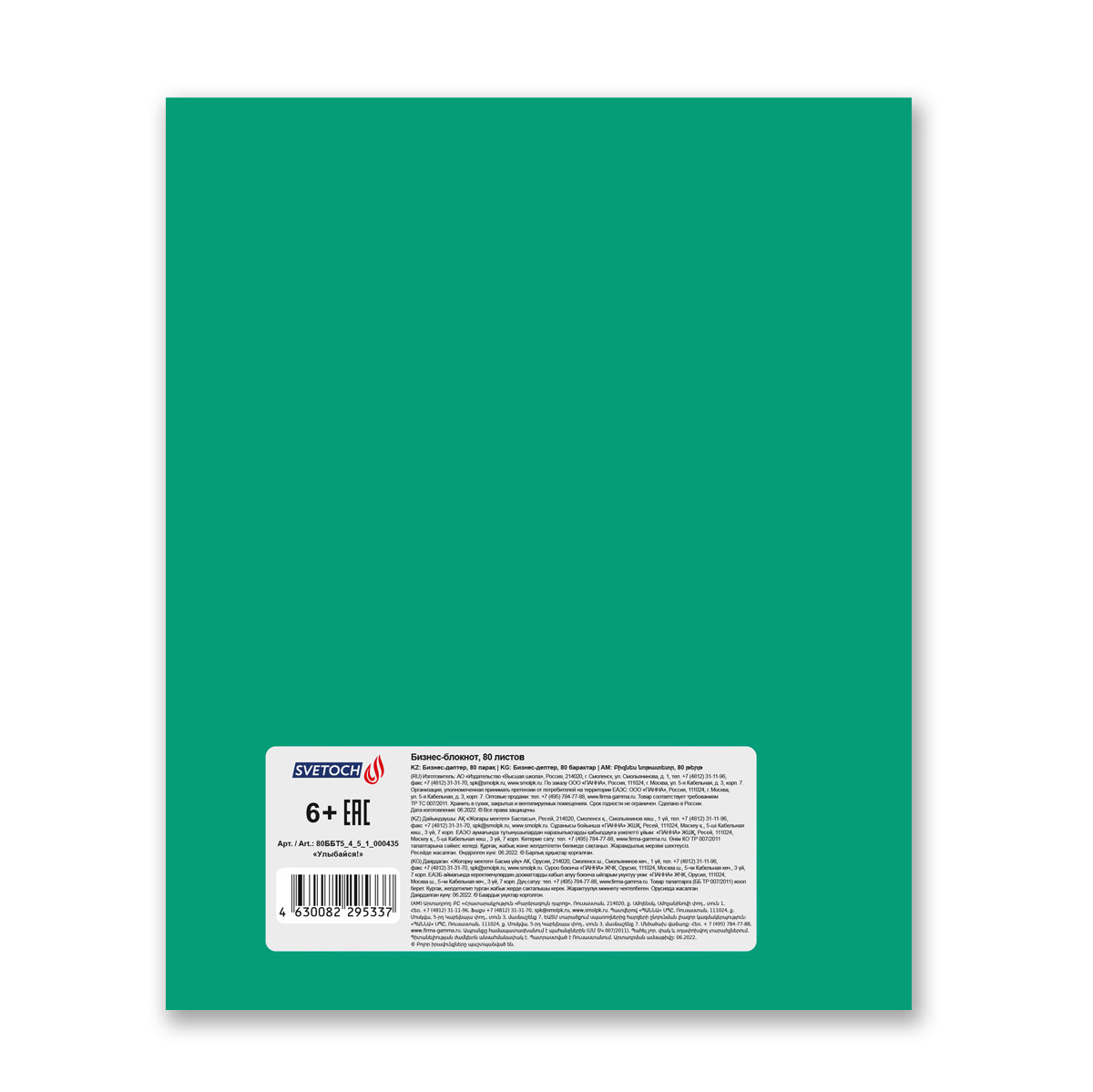 Бизнес-блокнот, матовая ламинация + выборочный лак, A5+ 80 л. 18 шт, клетка, Улыбайся! 000435, Светоч 80ББТ5_4_5_1