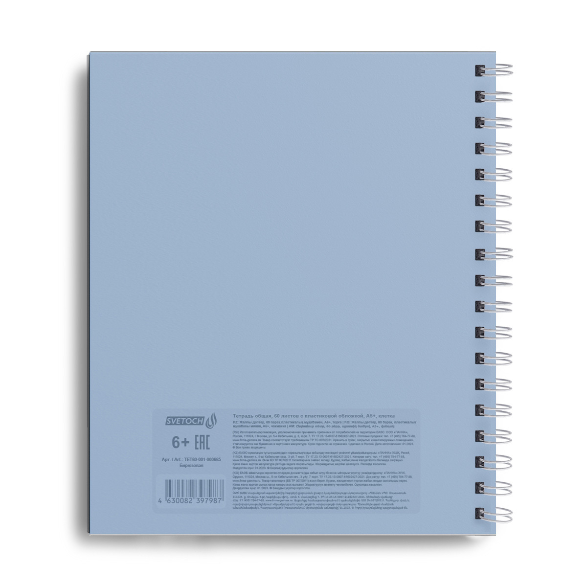 Тетрадь общая с пластик. обложкой, ч/б запечат. титульн. лист, 180 мкр, Pastel A5+ 60 л. на гребне 65 г/м², белизна 100%, 4 шт, клетка, 000666 Васильковая, Светоч ТЕТ60-001