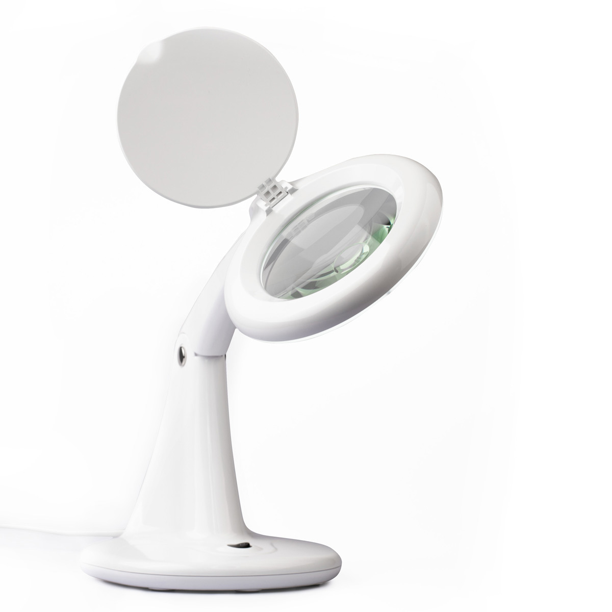 Лупа Prym со светодиодной подсветкой поможет удобно организовать ваше рабочее место. Подходит для вышивания, рукоделия, чтения при недостаточном освещении, сборки и ремонта украшений, филателии, маникюра и других работ. Имеет широкую и устойчивую подставку, дополнительный крепеж не потребуется. Гибкая ножка позволяет регулировать высоту и расположение лупы так, как вам удобно. Имеется встроенная круговая светодиодная подсветка. Подсветка ярко освещает рабочее место и позволяет защитить глаза от усталости. Подсветка на светодиодах экономична: она имеет длительный срок службы и потребляет минимум электроэнергии. Специальная крышка защищает линзу от пыли и царапин и позволяет использовать лупу как настольный светильник. Характеристики: Питание от электросети 220-240 В. В подсветке установлено 40 незаменяемых светодиодов нейтрального белого цвета. Количество линз: 2, основная с коэффициентом увеличения 2,0 и дополнительная, для 4-кратного увеличения. Материал линзы: стекло. Диаметр основной линзы: 95 мм. Высота: 44 см. Высота лупы под углом: 35 см. Размер основания: 17 х 14 см. Длина шнура питания: 145 см.