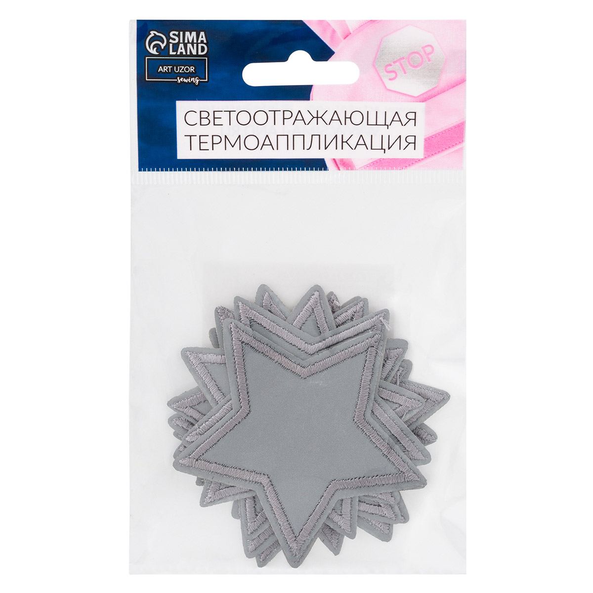 Светоотражающая термоаппликация звезда 6.5х6.5 см, 10шт