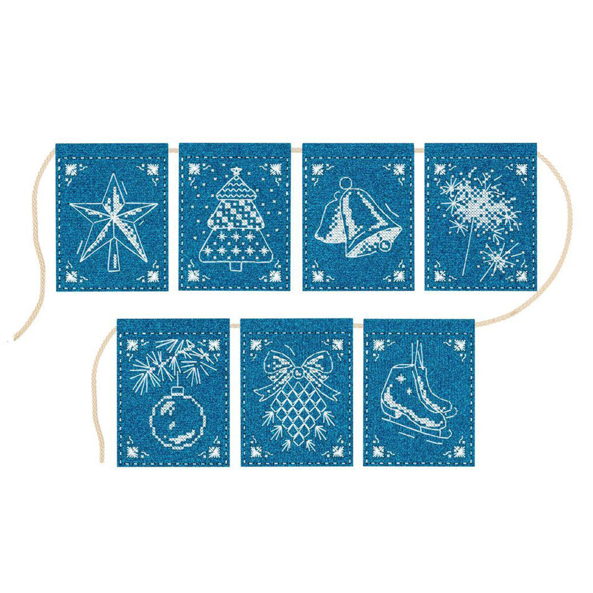Набор для вышивания нитками МП Студия Т-1001, на фетре Гирлянда Кружевное чудо (7 флажков), 11х8 см