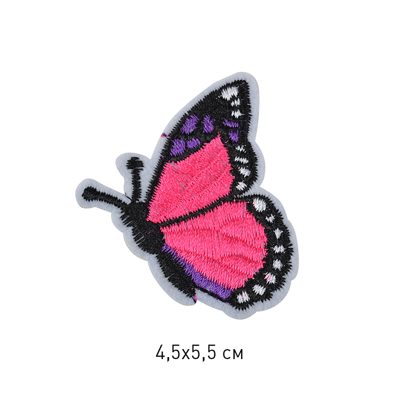 Термоаппликация Бабочка 4,5х6,5см, розовая, 10 шт