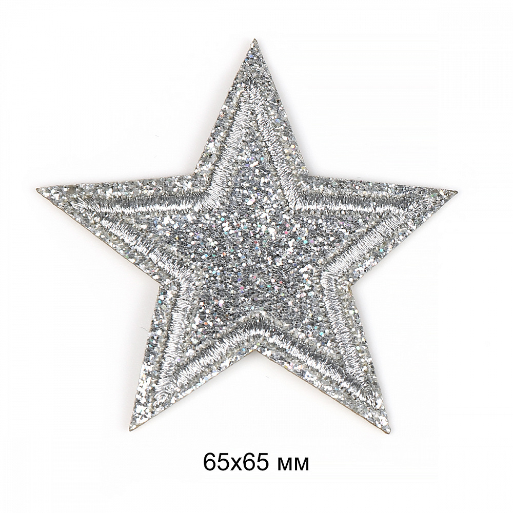 Термоаппликация вышитые TBY.S57 Звезды из глиттера цв.серебро 10 шт 65х65 мм