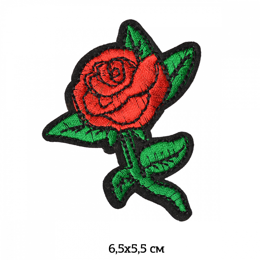 Термоаппликация вышитая Красная роза 6,5х5,5см, 10 шт