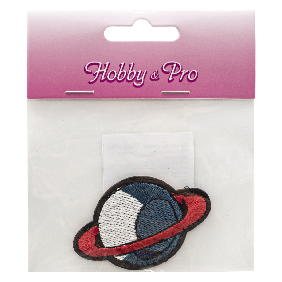 Термоаппликация "Голубая планета с красным кольцом", 6.4х4.2см