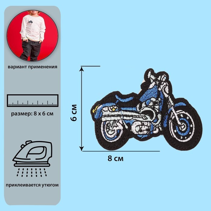Термоаппликация мотоцикл 8*6см синий, 6877698