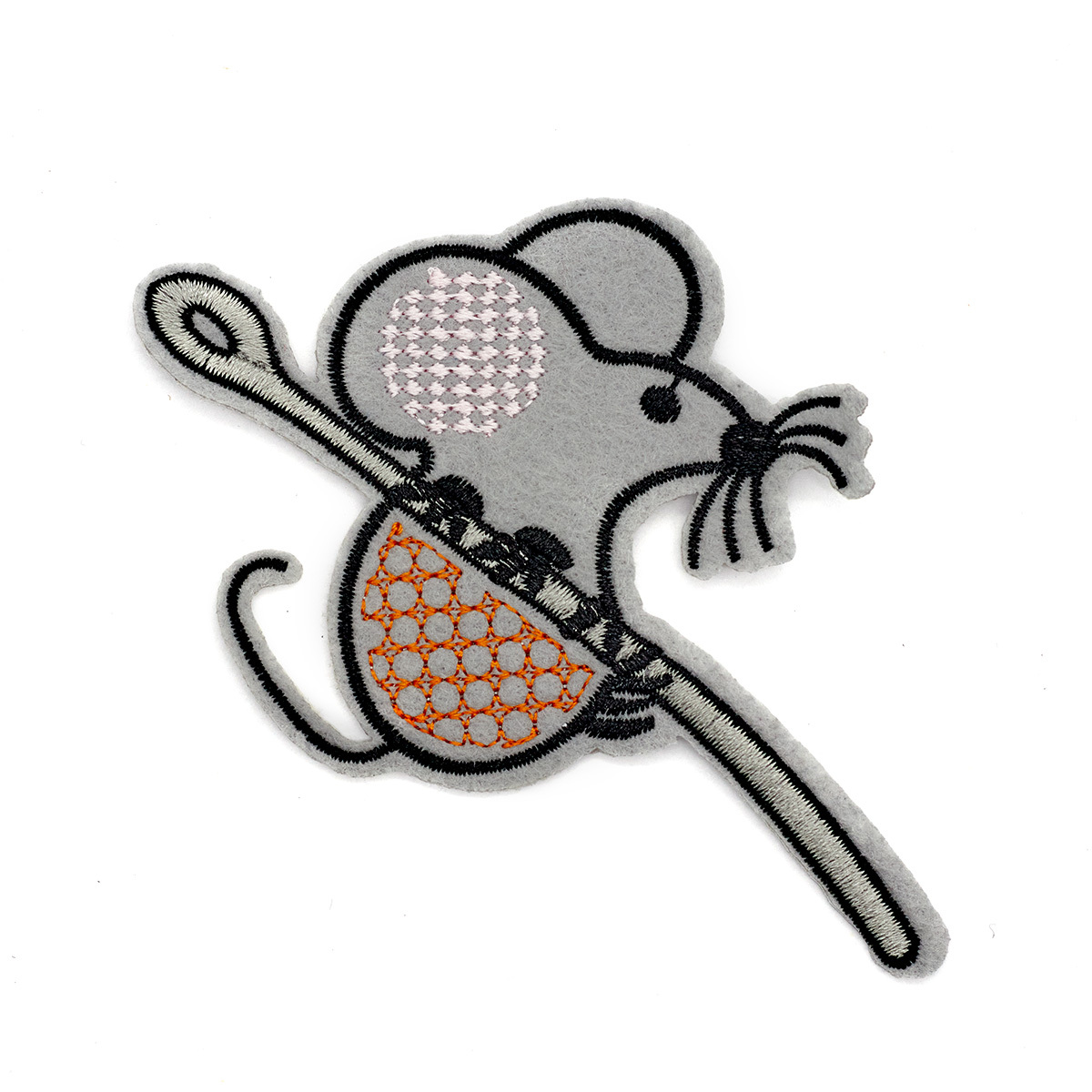 Термоаппликация вышитая Мышка с иголкой 11,2*7,6см (2 шт) (1 серый/розовый/оранжевый) 15829
