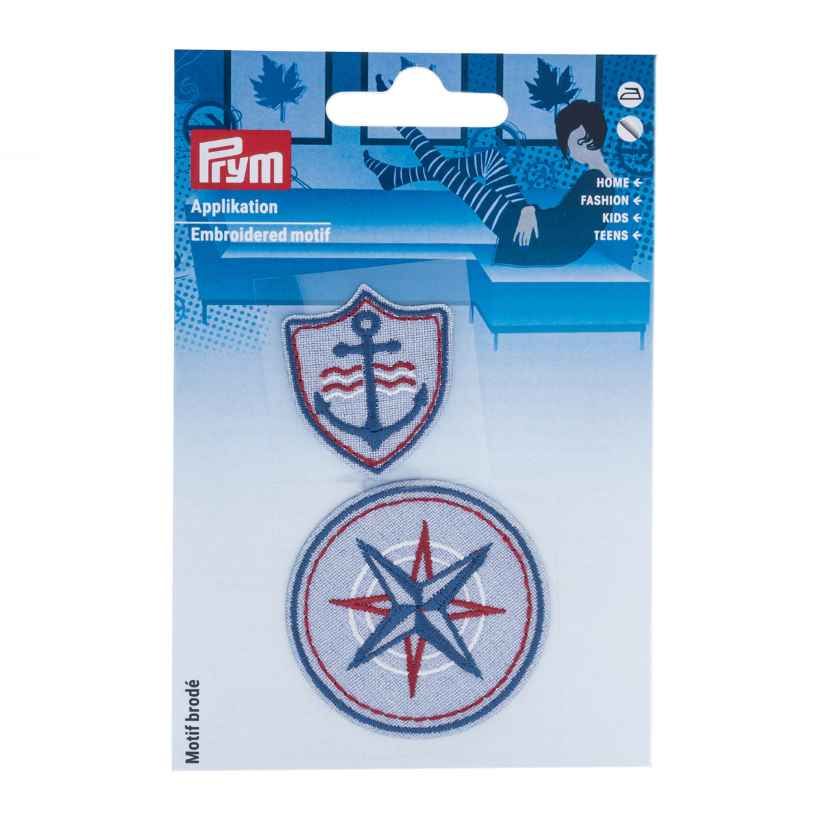 Термоаппликация Якорь/ Компас, 3.2x3.9 см, 5.1x5.1 см, цвет синий, светлый, 2 шт, 921494