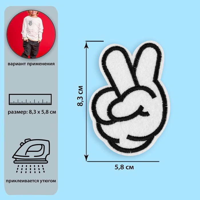 Термоаппликация жест мир 8,3*5,8 белый, 6877705