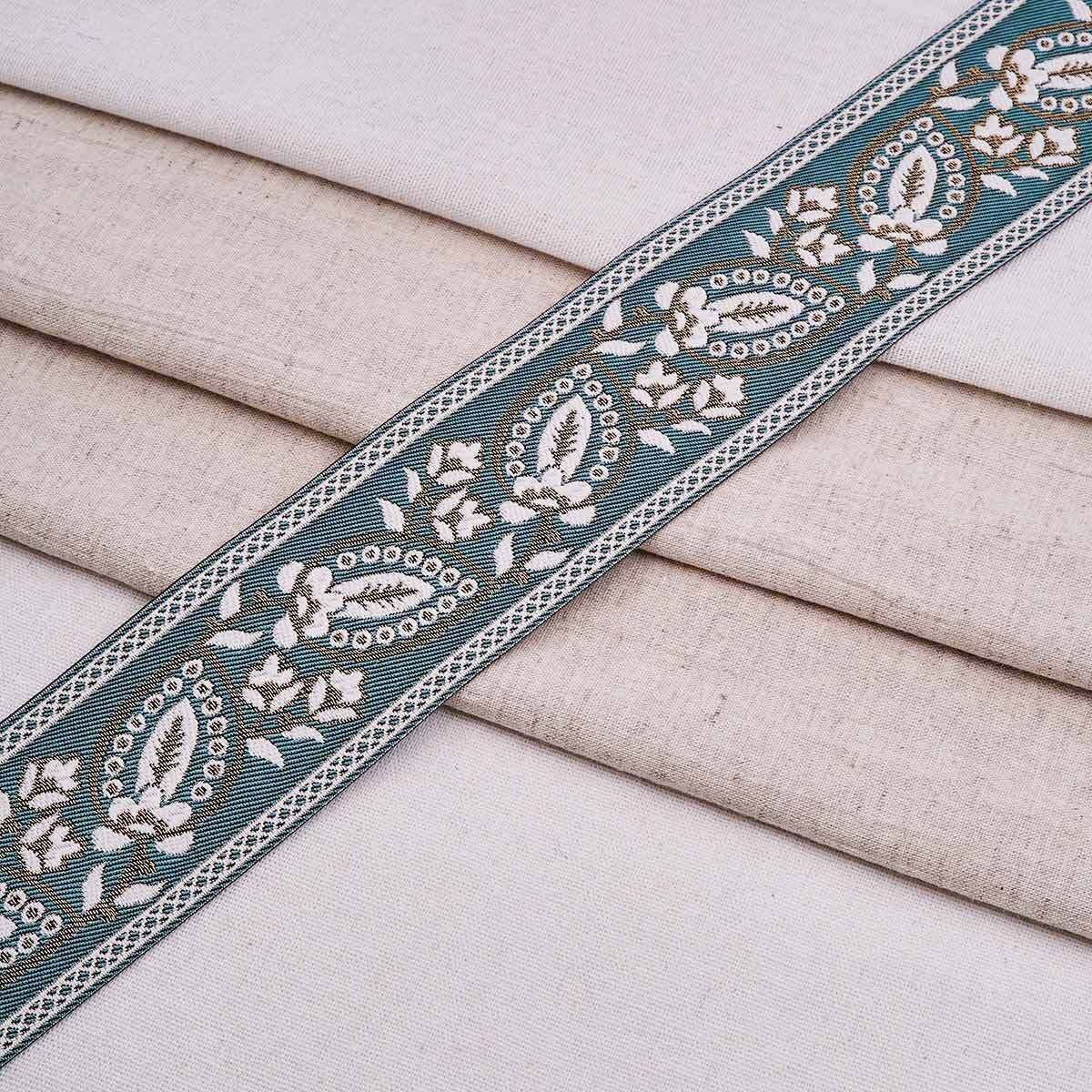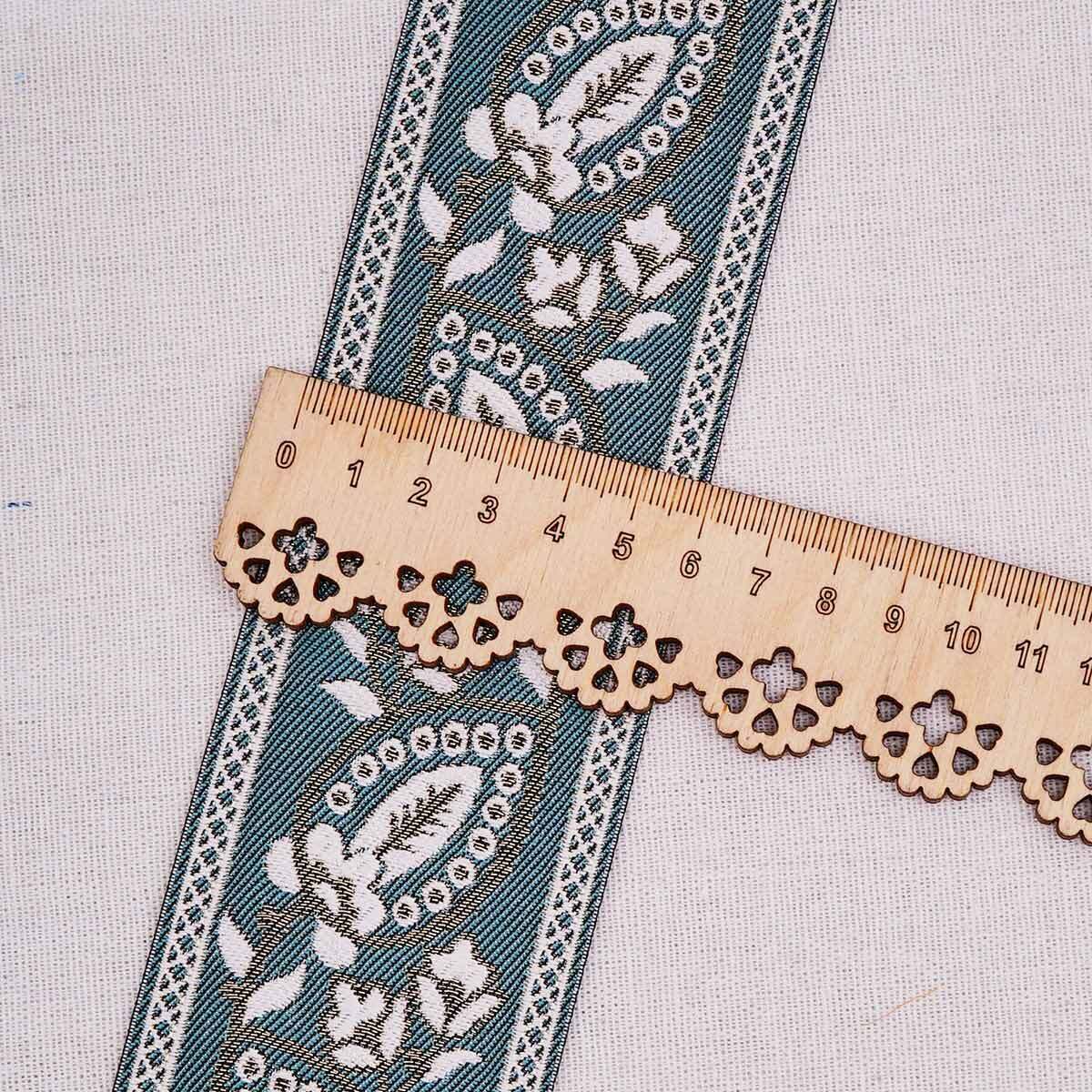 Лента (тесьма-бордюр) жаккардовая 60.0 мм / 25±1 метров, 3 бирюзовый, 3AR2679