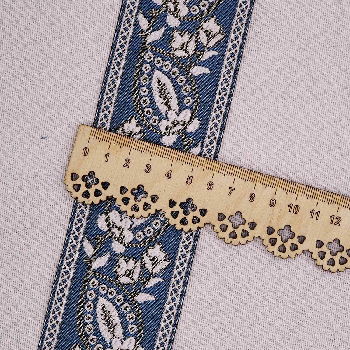 Лента (тесьма-бордюр) жаккардовая 60.0 мм / 25±1 метров, 4 синий, 3AR2679