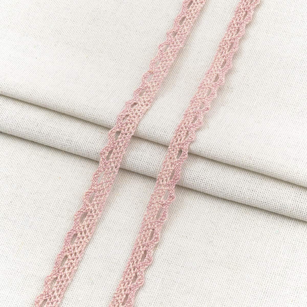 Кружево вязаное (тесьма) 10 мм / 18.2 метра, х/б, пыльная роза, А7428
