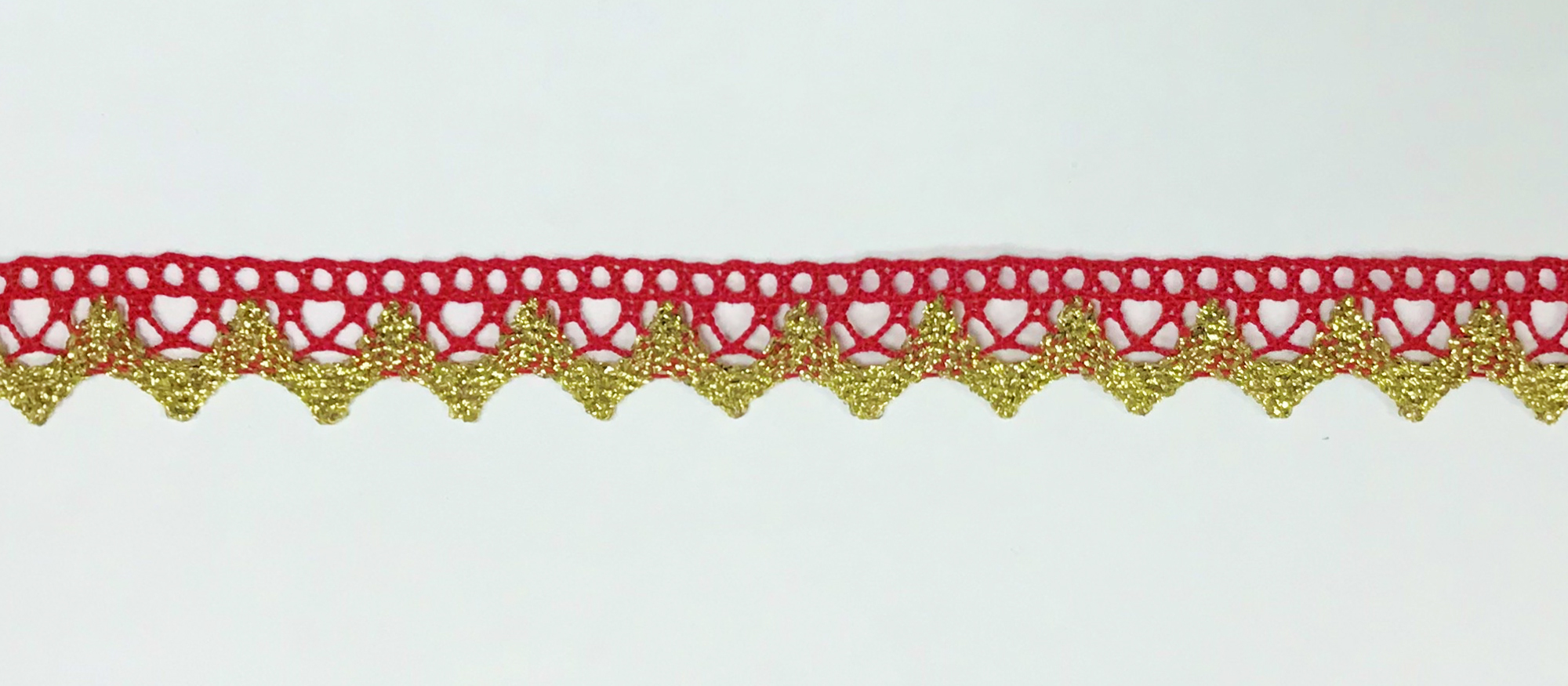 Кружево вязаное (тесьма) 18 мм цв. красный/золотой, R2710/01913, Mauri Angelo, 20 шт