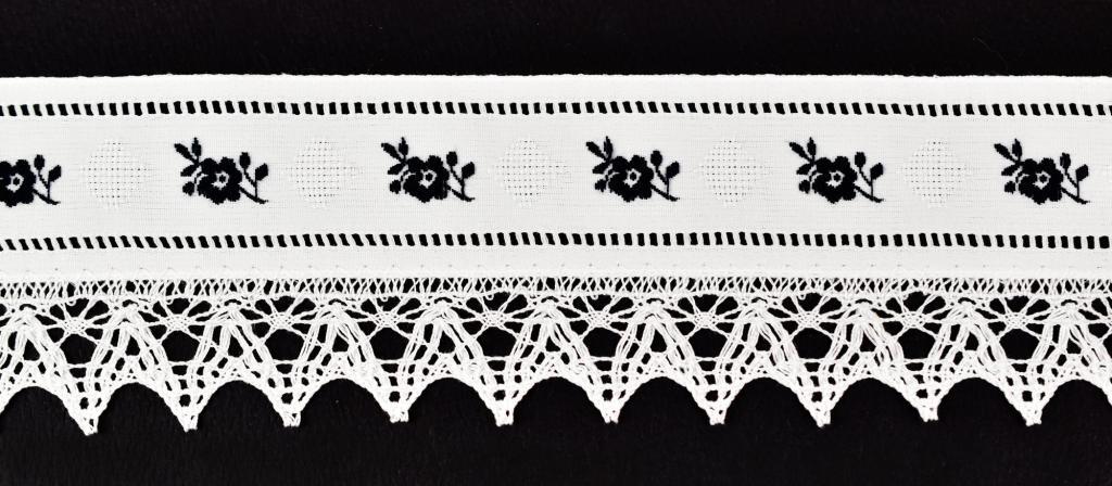 Кружево вязаное (тесьма) 55 мм, цв. белый/черный, 337Z414/390, Mauri Angelo, 15 м