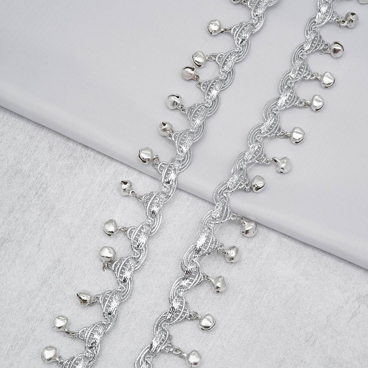 Тесьма отделочная металлизированная с бубенчиками 25.0 мм / 9.14 метра, серебро