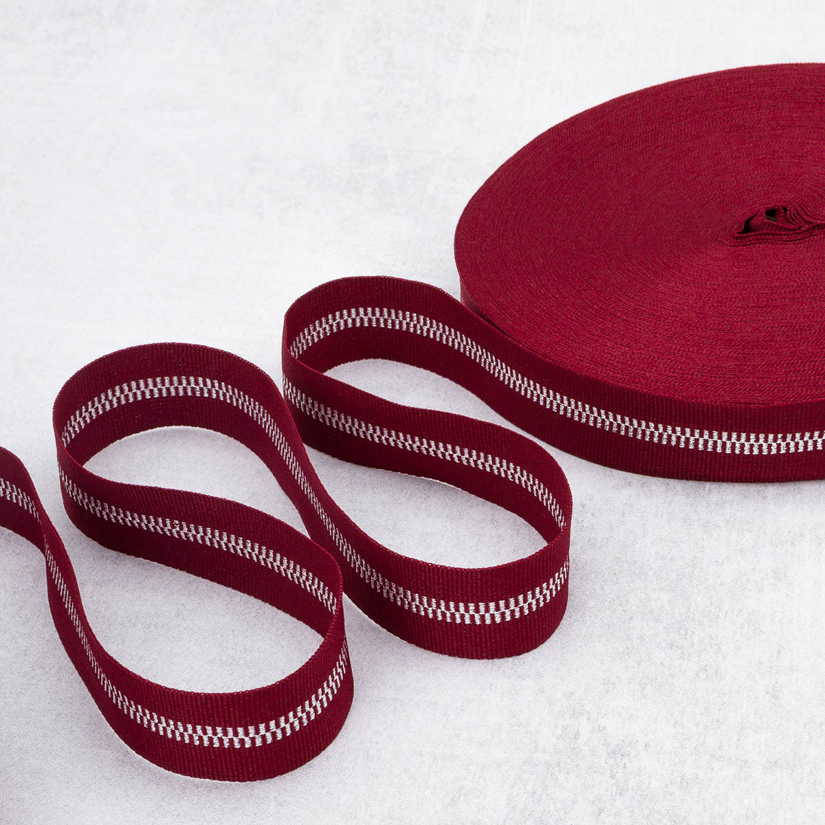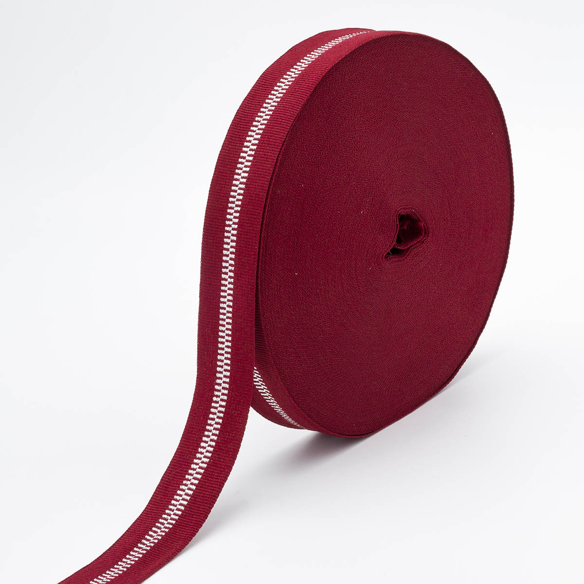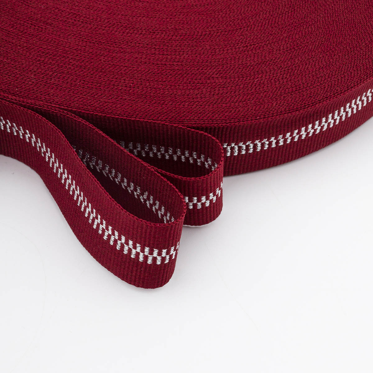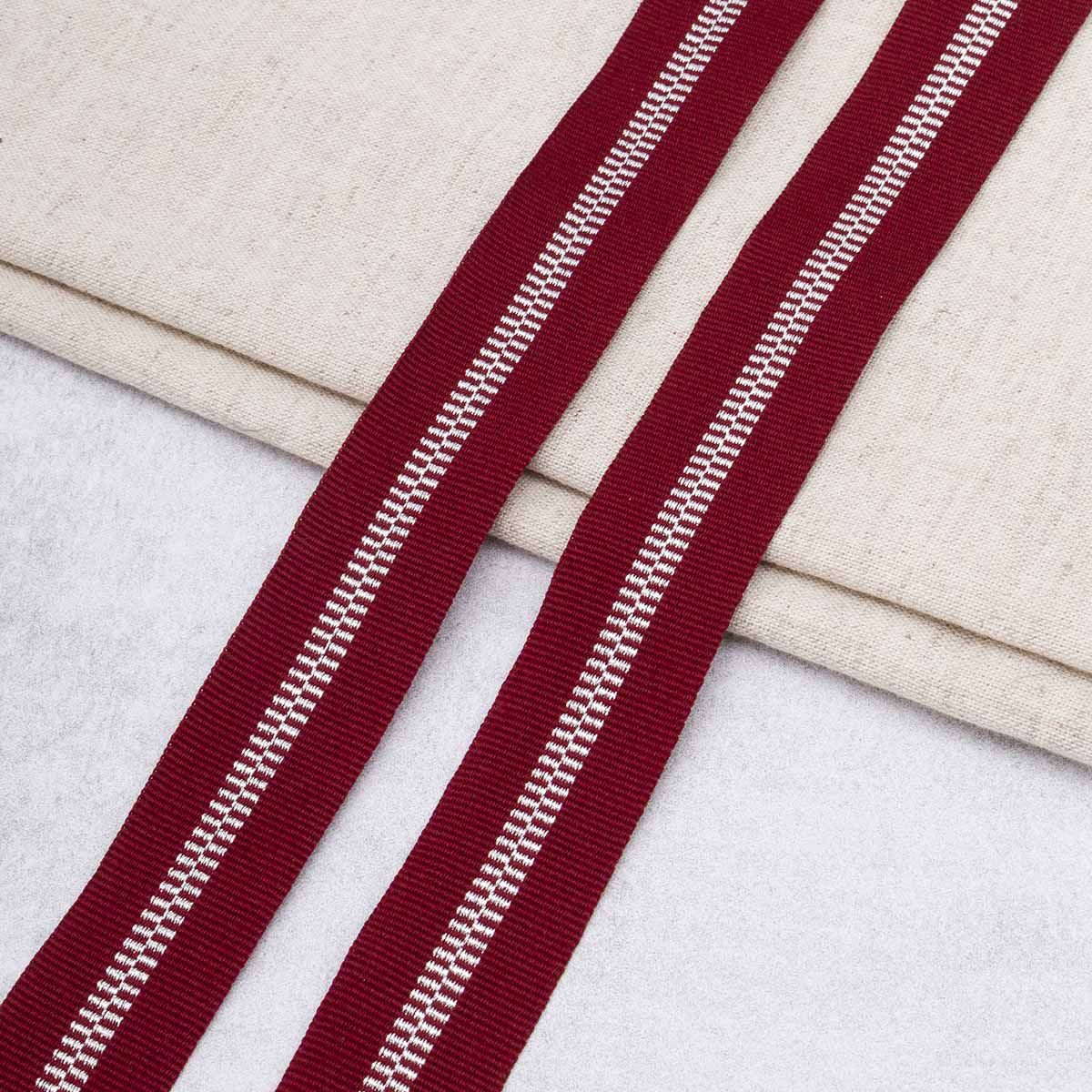 Тесьма отделочная 25 мм / 50 метров, 97%п/э, 3% метанит, бордовый с серебром, Р.90292