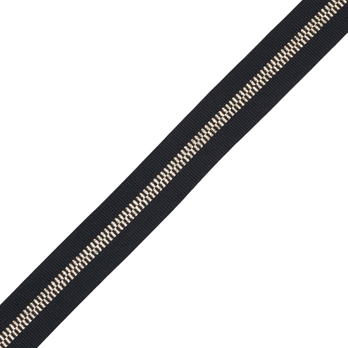 Тесьма отделочная 25 мм / 50 метров, 97% п/э, 3% мет., черный с золотом, Р.90292