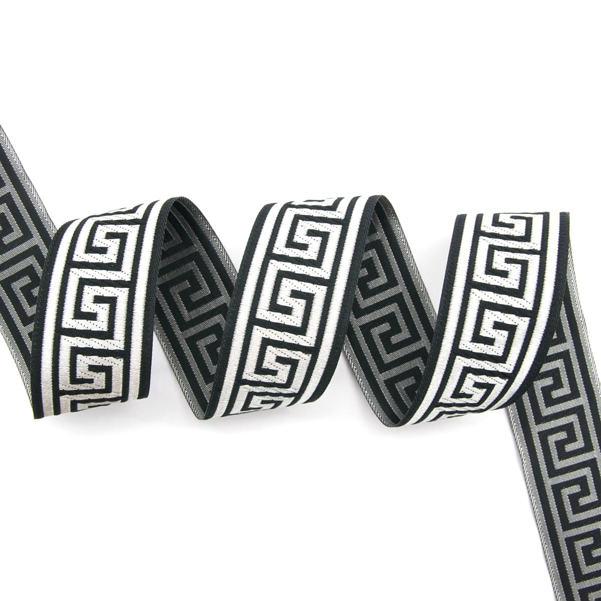 Тесьма отделочная Меандр 35 мм, 10 м, черный/серебро