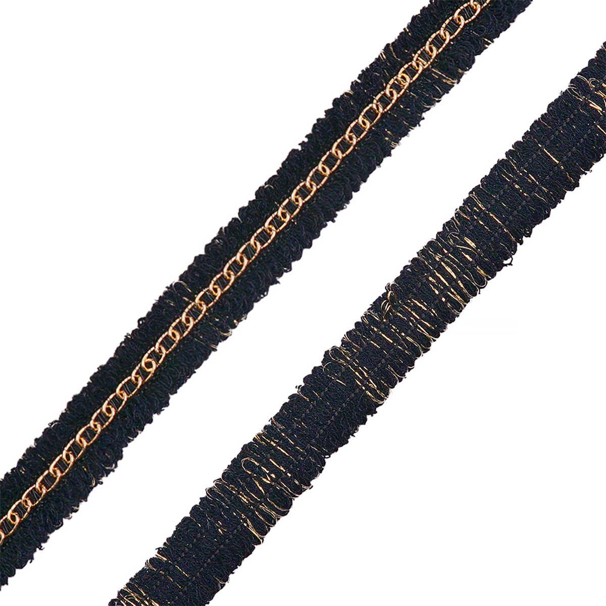 Тесьма отделочная Шанель с цепочкой 2 см / 13.7 метров, цв. черный/золото, 3AR2470