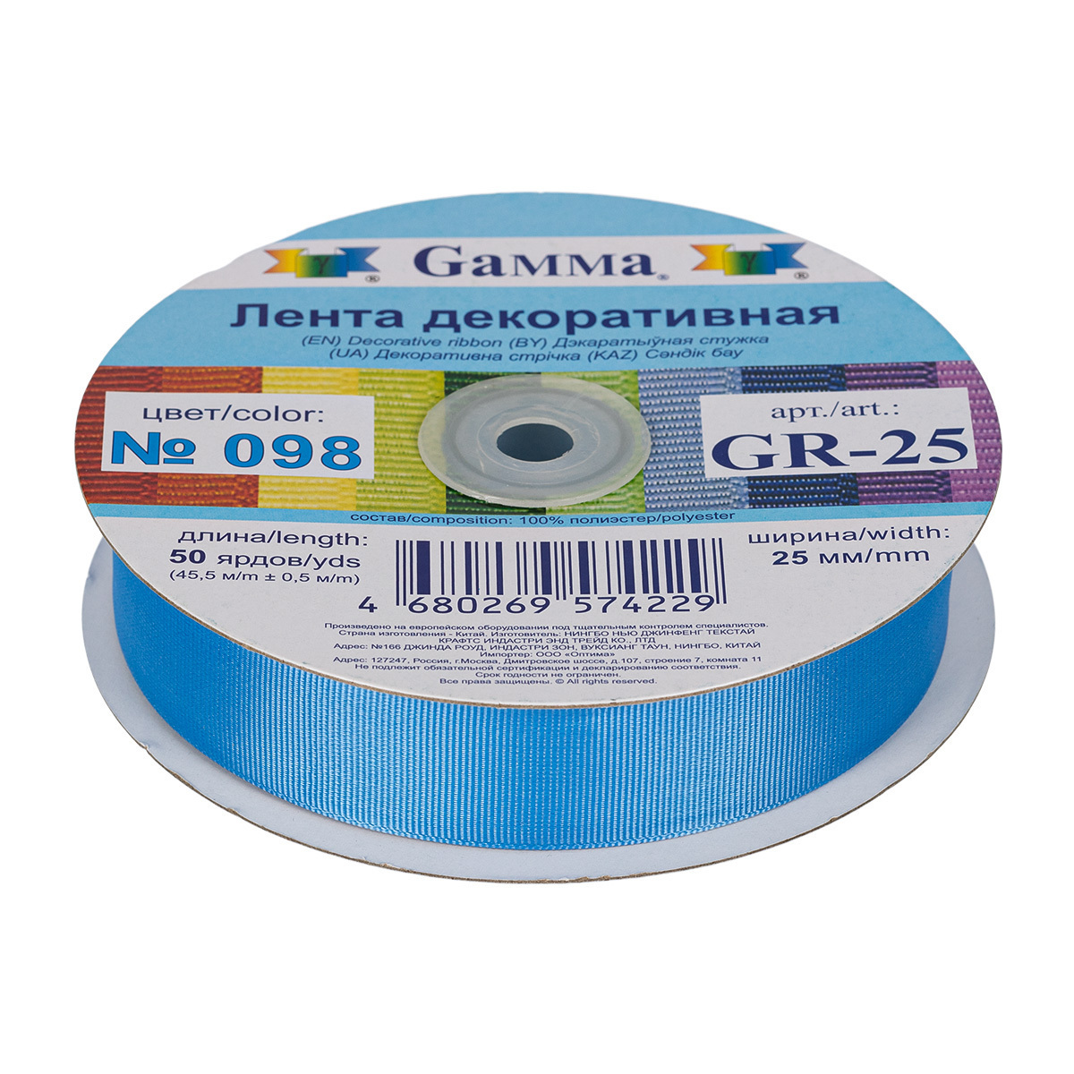 Лента репсовая (в рубчик) 25.0 мм / 45.5 метра, 098 т.голубой, Gamma GR-25